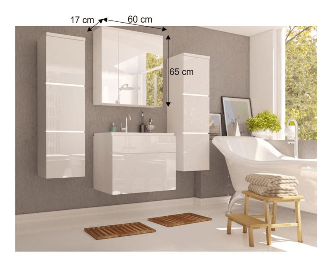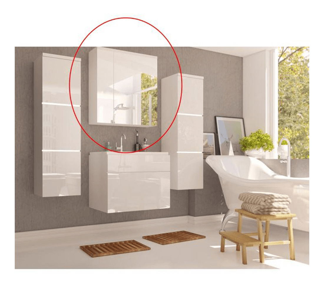 Fali fürdőszoba szekrény Maeve (fehér + extra magasfényű fehér)