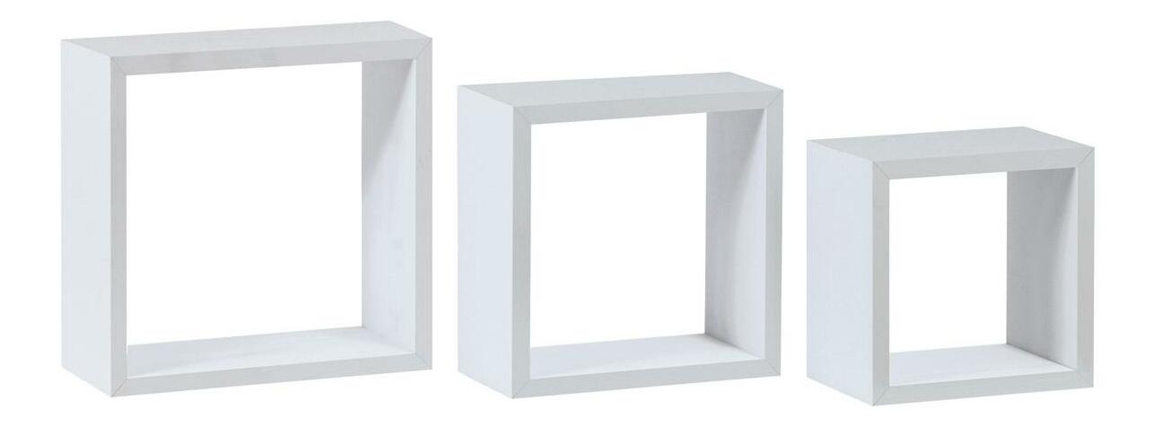 Mutasd3 darabos modern fali polc szett, különböző méretekben, minimalista dizájnnal és szögletes formával. A dizájn matt fehér színű, finom struktúrával. A váz MDF-ből, a felület matt laminált. A csomag tartalmazza a polcot, csavarokat és tipliket a rögzítéshez. A polc teherbírása 5-15 kg, a teherhordó falazat típusától függően.