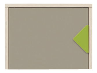 SFW1D_5_6 kis kompakt fali szekrény a Strzalka sorozatból a Black Red White gyártótól, mely szép megjelenést kínál modern kivitelben. A szekrény színkivitele tölgyfa és az első ajtók szürke színűek zöld dizajn elemmel. A szekrény minőséges anyagokból készült.