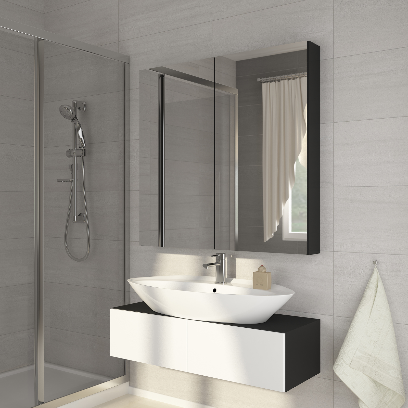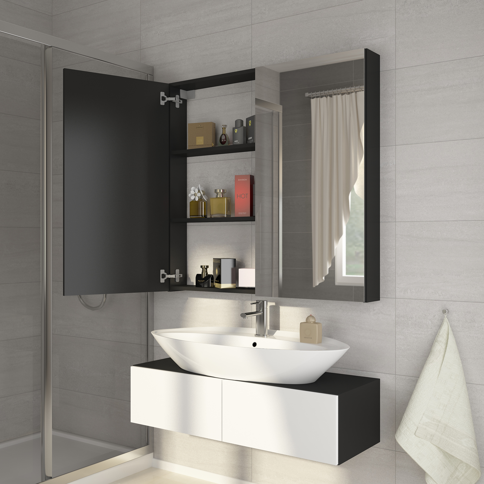 Falra szerelhető fürdőszoba szekrény Della 100 fekete + tükör