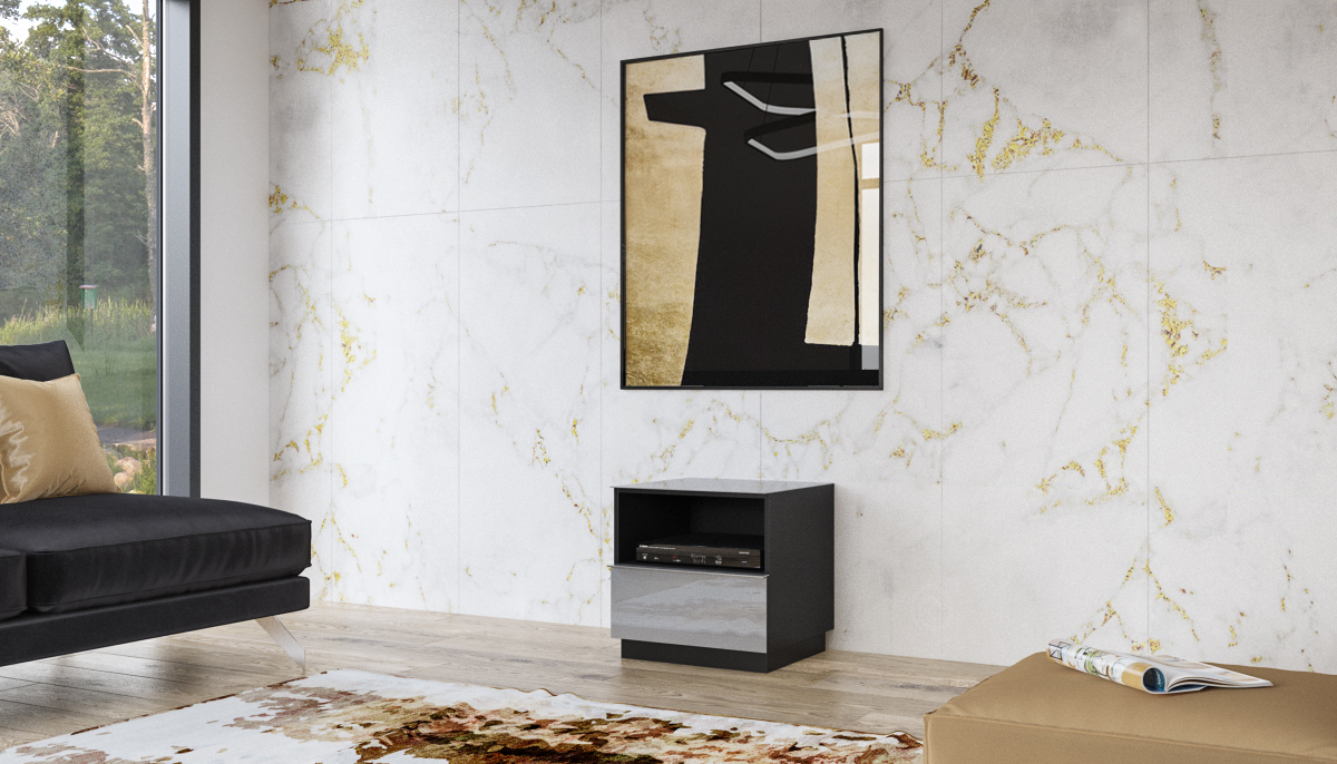 Falra szerelhető TV asztal Henry Typ 37 (szürke + magasfényű szürke)