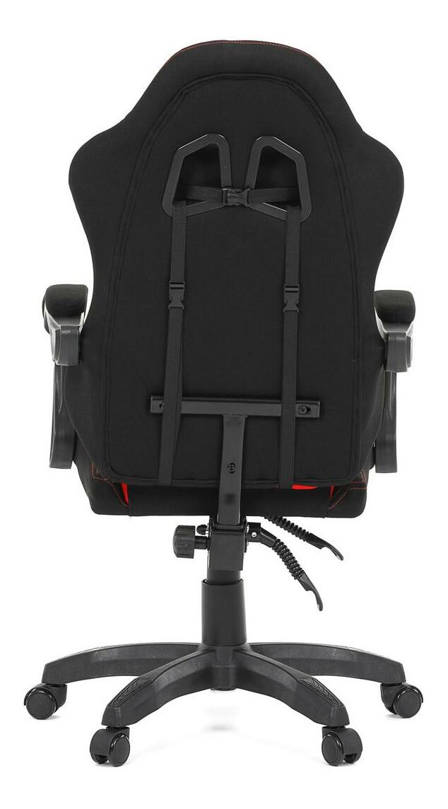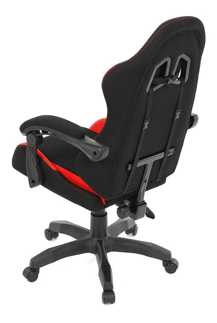 Ez a gamer szék ideális választás hosszú órákon át tartó számítógépes munkához, akár munkához, akár játékhoz. Az ergonomikusan kialakított, derék- és fejtámlával ellátott ülés maximális kényelmet biztosít. A finoman vastag, fekete és piros kombinációjú szövetből készült kárpit modern megjelenésű, és könnyen illeszkedik bármilyen belső térbe. A zárral ellátott szinkronmechanizmus lehetővé teszi az egyéni beállítást a felhasználó igényei szerint. A kerekek kemény padlóhoz vannak igazítva, amit irodai környezetben és otthoni irodában is értékelni fog.