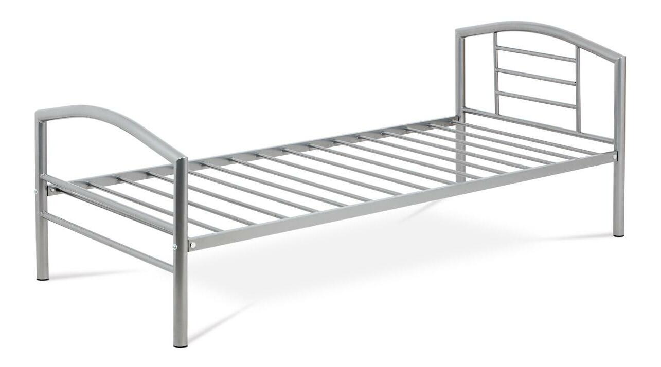 MutasdEgyszemélyes fém ágy szürke színben. Az oldalak magassága 35 cm, az ágy 90x200 cm-es matrachoz alkalmas. Az ágy fémből készült, egycsöves ágyráccsal, matrac nélkül kapható. Teherbírás 100 kg.