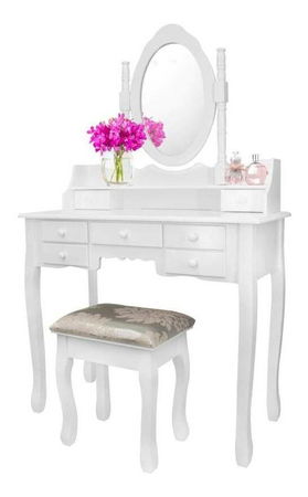 Fésülkődőasztal zsámollyal Pompadour (fehér)