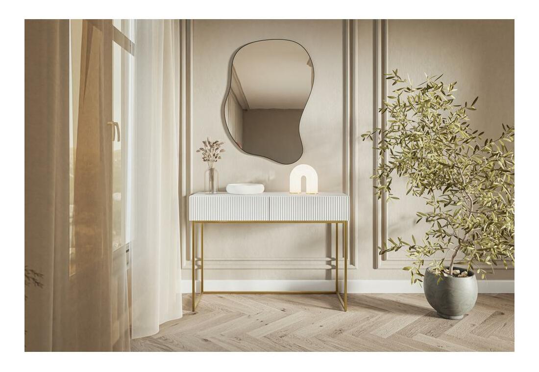 Berendezi álmai lakását, és még mindig stílusos bútorra van szüksége a munka befejezéséhez? Ilyen helyzetben bemutatjuk Önnek egyedi kollekciónkat - olyan bútorokat, amelyek mellett nem megy el közömbösen. A mart előlap egyedi karaktert kölcsönöz az egésznek - nagy színes növényekkel vagy stílusos kiegészítőkkel kombinálva a bútorok igazán nagyszerűek lesznek. A fésülködőasztal két tágas fiókkal rendelkezik, amelyeknek köszönhetően rendezheti a kozmetikumokat vagy az ékszereket. Ha az asztal fölé világítással ellátott tükröt akaszt, hangulatos sarkot teremt a kikapcsolódáshoz. A bútor másik előnye a porszórt acélból készült keret formájú tömör lábak, amelyek maximális stabilitást biztosítanak, és egyben stílusos kiegészítői a helyiségnek. A fésülködőasztal kerete lehetővé teszi a szék szabad mozgását, mert nincs rajta egyetlen keresztirányú öv Termékleírás: a szekrény korpusza16 mm-es laminált lapból készült. Nedvesség- és karcálló Kronospan 110 PE, amely biztosítja a hosszú használatot, az elülső oldalon lévő lécek 16 mm vastag MDF-ből készültek, a fiókok push to open módszerrel nyithatók, a lábak porszórt acél, görgőkkel a padlókarcolás ellen