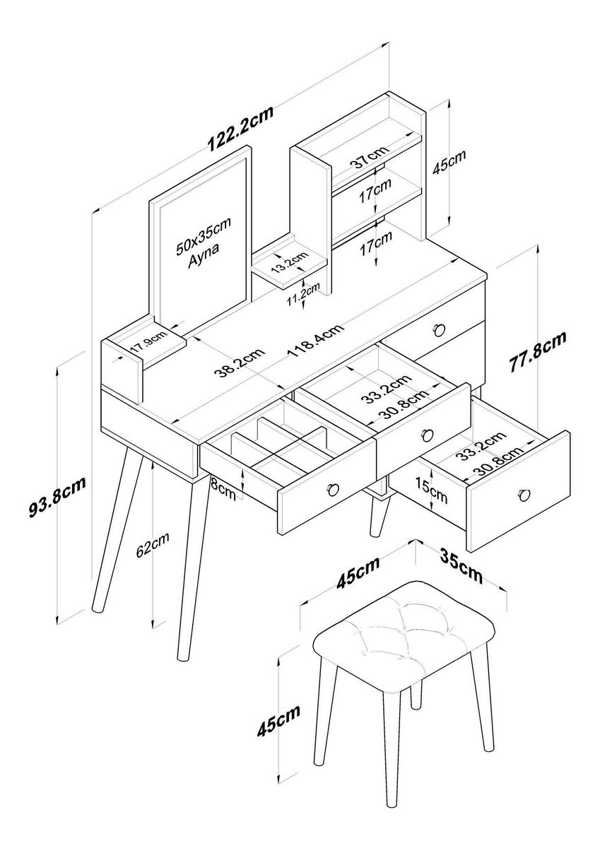 Fésülködőasztal zsámollyal Blake 101 (fehér)