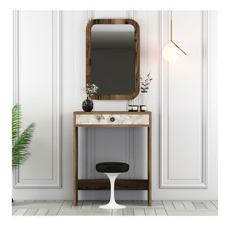 A fésülködőasztalhoz egy szék is tartozik. Önön múlik, hogy melyik típust választja – elegendő-e egy zsámoly, egy dizájnos kárpitozott fotel vagy egy háttámlás fotel. Kész készleteket is kínálunk, köztük olyat is, amelyhez egy szék is tartozik. A fésülködőasztal legfontosabb része kétségtelenül egy nagy tükör. Az azstal nem lenne teljes nélküle. A széles választékból többféle méret közül választhat. A nagyobb tükrök praktikusabbak, mert a teljes outfitjét is ellenőrizheti bennük. Javasoljuk, hogy kiegészítse kisebb tükrökkel az oldalakon. A világítás is nagyon szorosan kapcsolódik ehhez. Különbség van a smink felvitele között gyenge fürdőszobai világításnál és természetes fényben, ahol minden tökéletlenség látható. Ha van rá lehetősége, helyezze az asztalt az ablak mellé, és adjon hozzá egy asztali lámpát. Mivel ez állítólag egy kis paradicsomi darab, kényeztesse magát friss virágokkal, fotóval vagy egyéb díszítéssel az asztalon, amely mindig mosolyt csal az arcára