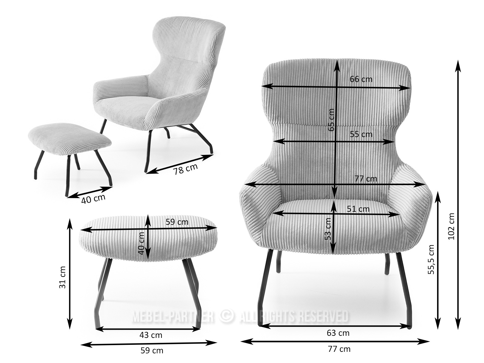 92 x 80 x 77 cm / 21,1 kg