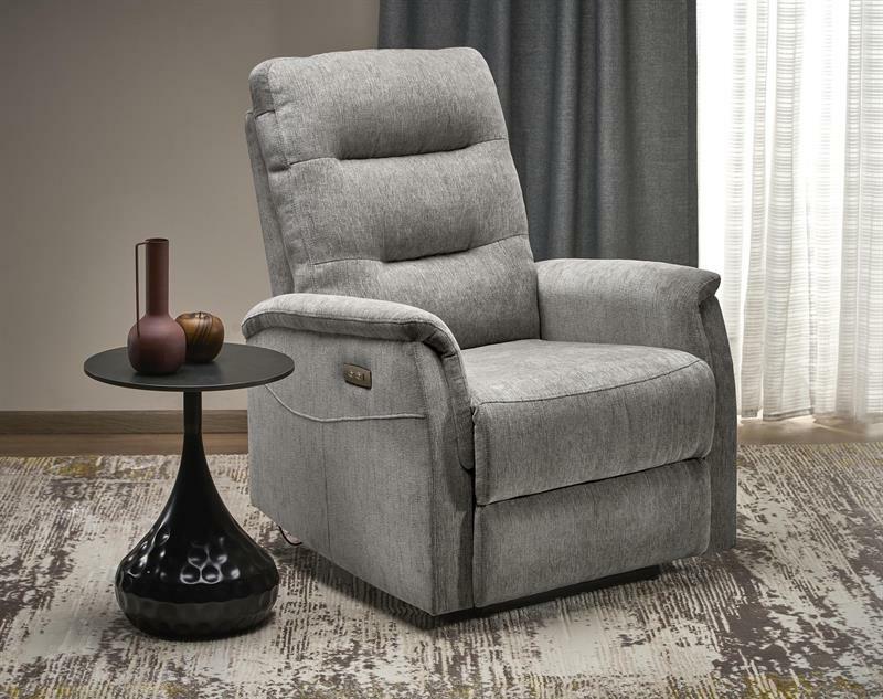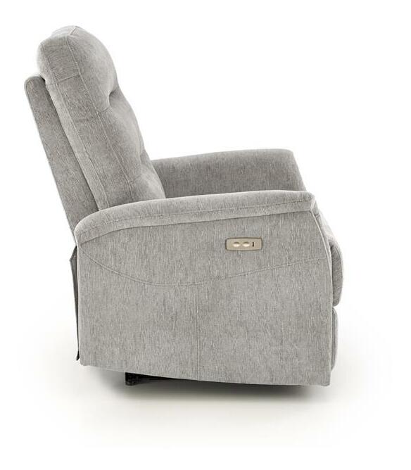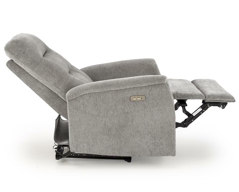 Ez az elektromos összecsukható pihenőszék modern technológiákkal van felszerelve a maximális kényelem érdekében. Alacsony műanyag lábakkal van felszerelve, amelyek stabil tartást és könnyű karbantartást biztosítanak. A foltos ODIN szövetből készült kárpit nagy tartósságot és vonzó megjelenést garantál. A szék teherbírása 120 kg, ülőmagassága 47 cm, míg kibontva eléri a 160 cm mélységet, így elegendő helyet biztosít a kényelmes fekvéshez. Ezenkívül az integrált USB port lehetővé teszi az elektronikus eszközök kényelmes töltését, így ez a szék ideális hely a pihenésre a nappaliban vagy a multimédiás szobában.