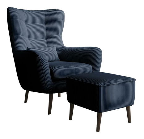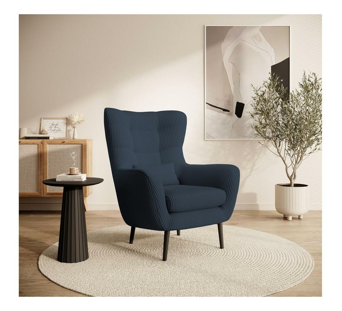MutasdKényelmes nappalibútort keres, ahol pihenhet egy fárasztó nap után? Válassza azt a fölesfotelt, amelynek magas háttámlája jellegzetes testhez simuló fülekkel és kényelmes karfákkal rendelkezik, amelyek lehetővé teszik, hogy kedvenc könyvével vagy egy csésze forró teával a fotel szívébe süllyedjen. Az elegáns varrások varázslatot kölcsönöznek az egésznek, a fa lábak pedig stabil tartást biztosítanak. A divatos forma és a természetes színek bármilyen elrendezésbe illeszkednek, a skandinávtól a modern stílusig. Termék részletek: hab vastagság a háttámlában: 6 cm, hab vastagság az ülésben: 13 cm, háttámla magassága: 70 cm, kényelmes kartámaszok, stílusos varrások. Fekete fa lábak. A bútor tengerészkék színű Lincoln 77 szövettel kárpitozva. Kordbársony stílusú szövet. A vastag csíkokkal borított felület kellemes tapintású. Nagy kopásállóság, súrlódás és fényállóság jellemzi.
