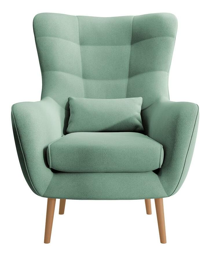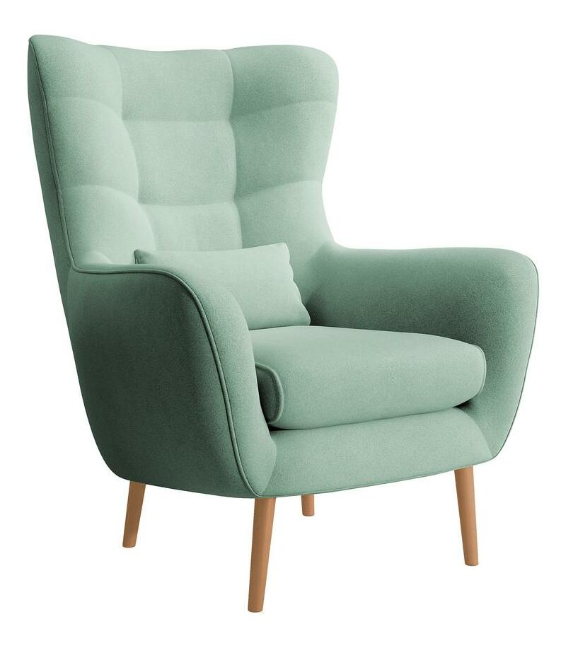 MutasdKényelmes nappalibútort keres, ahol pihenhet egy fárasztó nap után? Válassza azt a fölesfotelt, amelynek magas háttámlája jellegzetes testhez simuló fülekkel és kényelmes karfákkal rendelkezik, amelyek lehetővé teszik, hogy kedvenc könyvével vagy egy csésze forró teával a fotel szívébe süllyedjen. Az elegáns varrások varázslatot kölcsönöznek az egésznek, a fa lábak pedig stabil tartást biztosítanak. A divatos forma és a természetes színek bármilyen elrendezésbe illeszkednek, a skandinávtól a modern stílusig. Termék részletek: hab vastagság a háttámlában: 6 cm, hab vastagság az ülésben: 13 cm, háttámla magassága: 70 cm, kényelmes kartámaszok, stílusos varrások. Világos fa lábak. Menta színű Castel 34 szövettel kárpitozott bútor. A Castel egy puha, sima szövet, amelyet nagy súrlódás-, kopás- és foltosodási ellenállás jellemez, így ideális mindennapi bútorokhoz. További előnye az Easy Clean technológia - az anyag könnyen tisztítható, amely lehetővé teszi a szennyeződések könnyű eltávolítását kevés vízzel és puha ruhával.