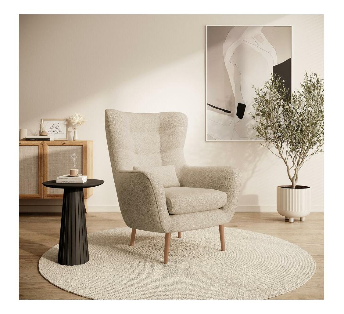 MutasdKényelmes nappalibútort keres, ahol pihenhet egy fárasztó nap után? Válassza azt a fölesfotelt, amelynek magas háttámlája jellegzetes testhez simuló fülekkel és kényelmes karfákkal rendelkezik, amelyek lehetővé teszik, hogy kedvenc könyvével vagy egy csésze forró teával a fotel szívébe süllyedjen. Az elegáns varrások varázslatot kölcsönöznek az egésznek, a fa lábak pedig stabil tartást biztosítanak. A divatos forma és a természetes színek bármilyen elrendezésbe illeszkednek, a skandinávtól a modern stílusig. Termék részletek: hab vastagság a háttámlában: 6 cm, hab vastagság az ülésben: 13 cm, háttámla magassága: 70 cm, kényelmes kartámaszok, stílusos varrások. Világos fa f lábak. Bézs színű Raven 28 szövettel kárpitozott bútor. A Raven egy tartós anyag, kötött szerkezettel. Fény hatására nem fakul ki, és nagyon ellenáll a száraz dörzsölésnek.