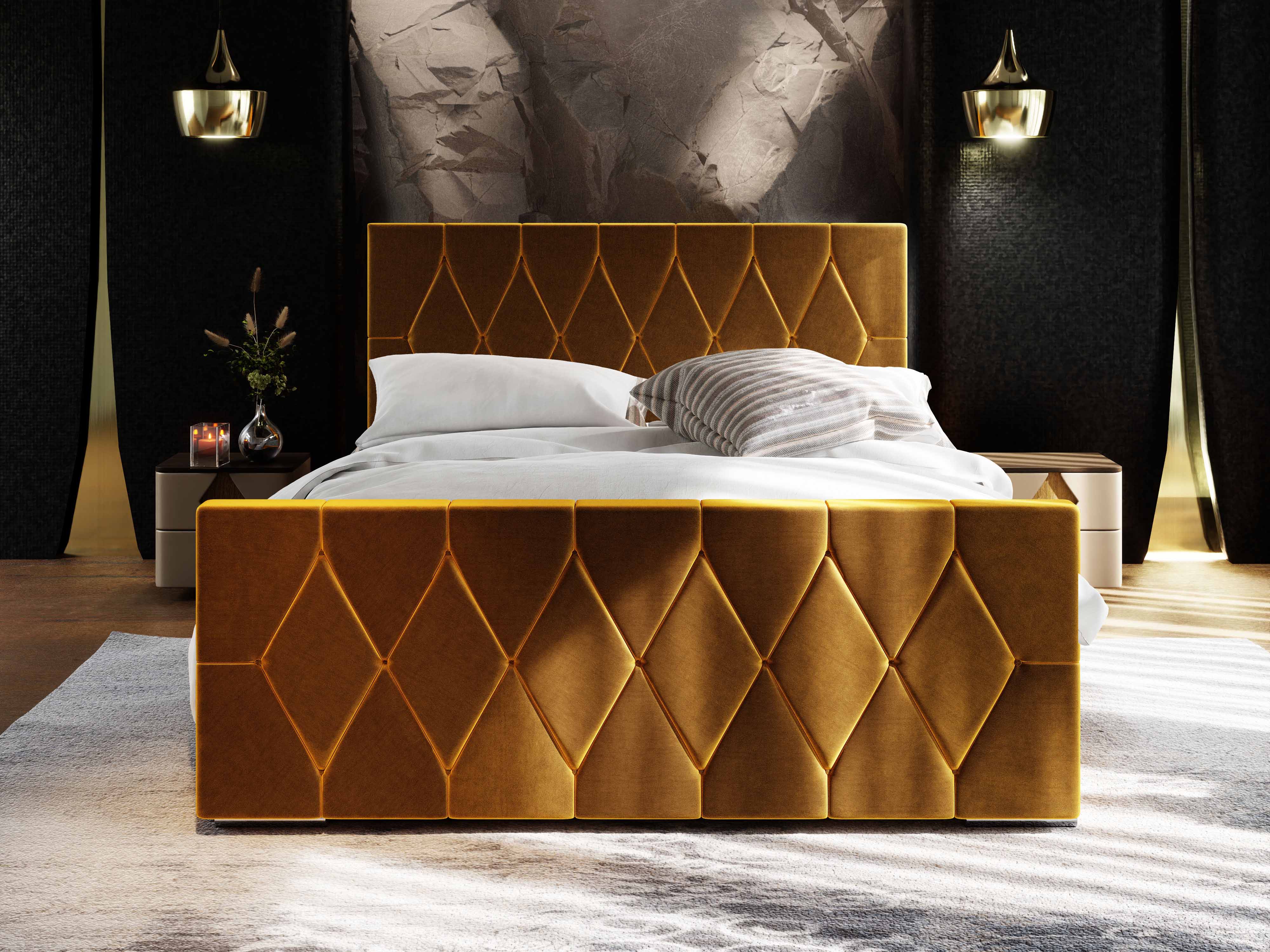 Franciaágy 140 cm Alex (arany) (ágyráccsal és tárolóhellyel)
