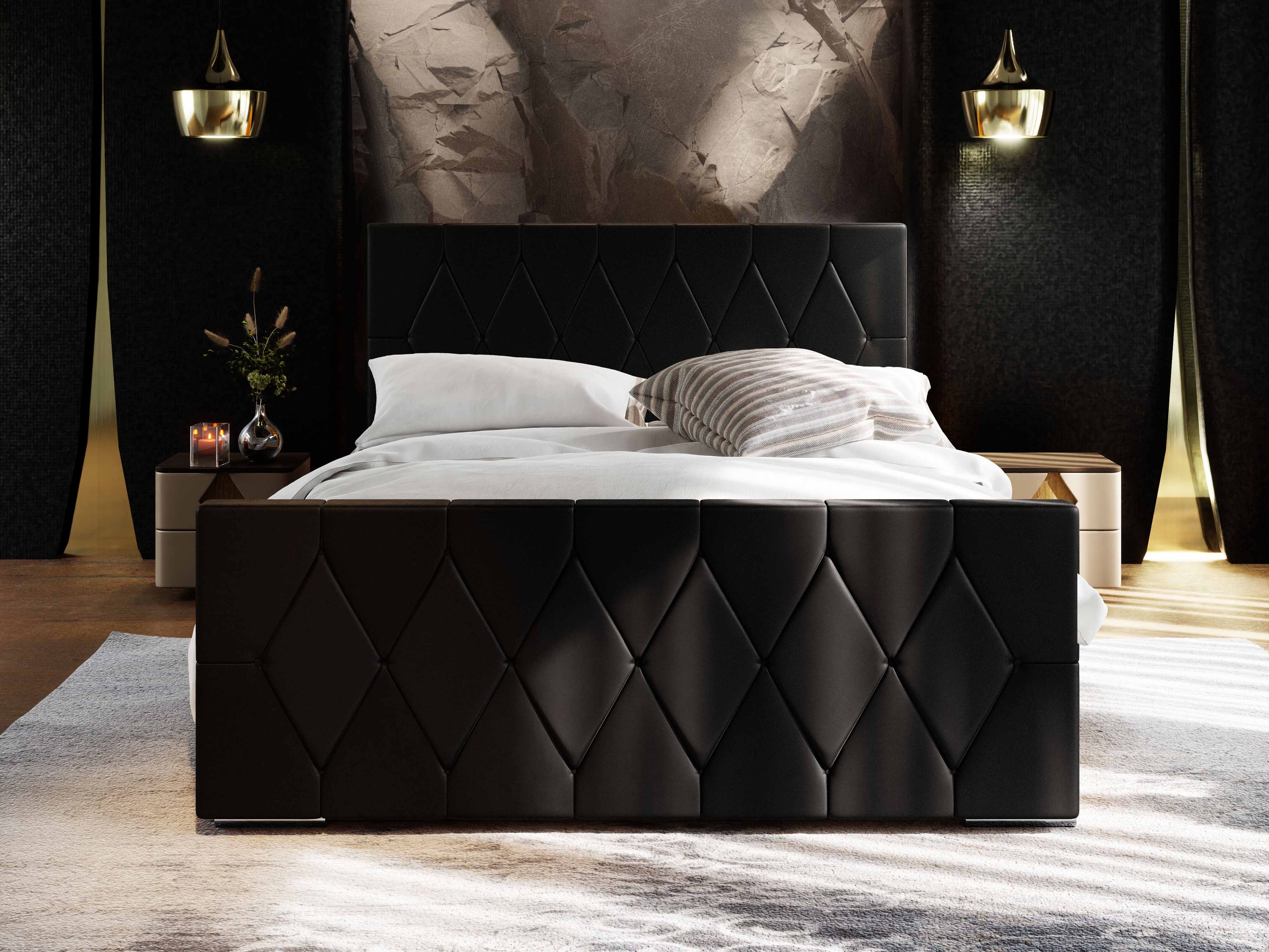 Franciaágy 140 cm Alex (fekete) (ágyráccsal és tárolóhellyel)