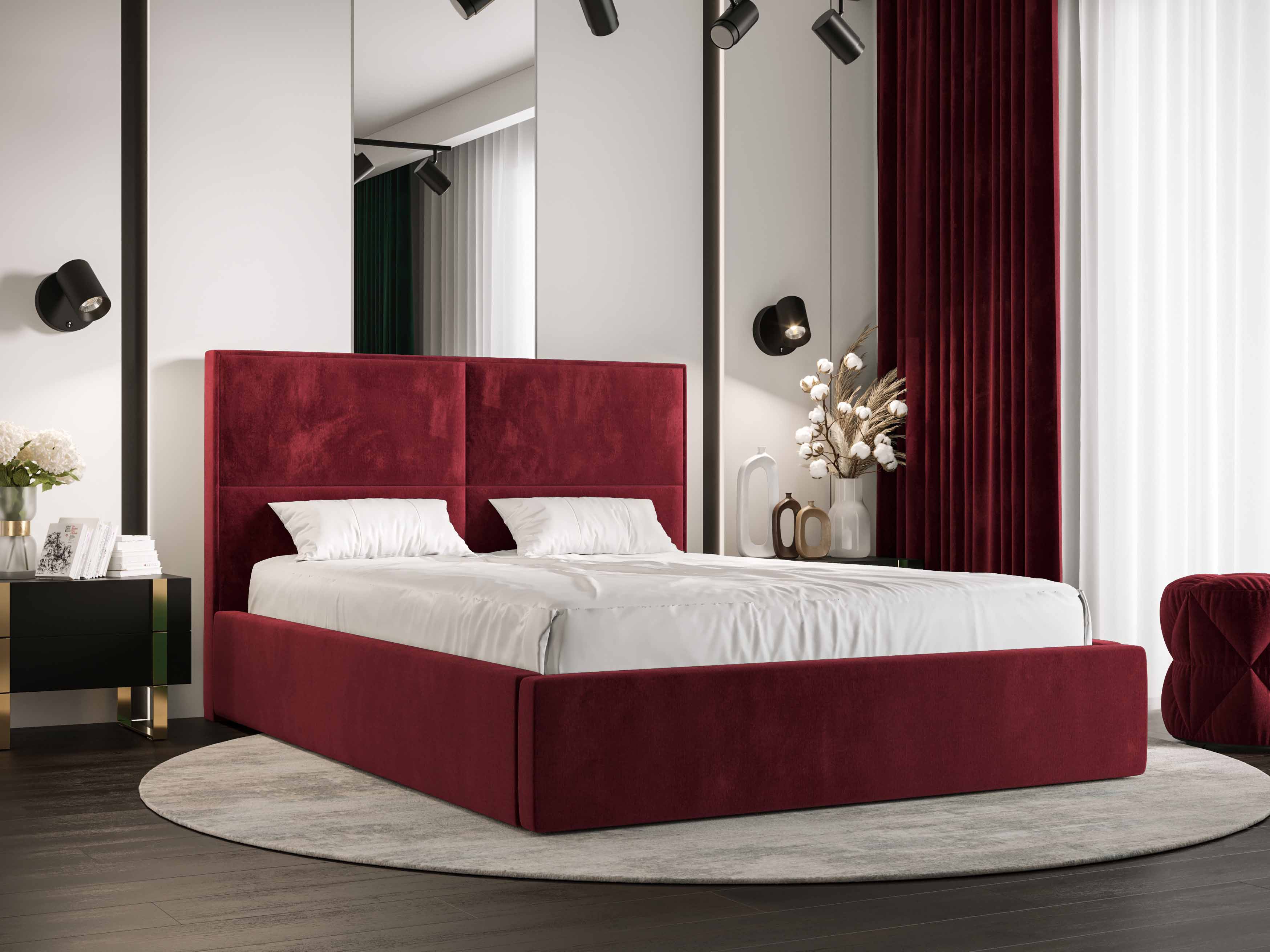 Franciaágy 140 cm Alfonso (bordó) (ágyráccsal és tárolóhellyel)