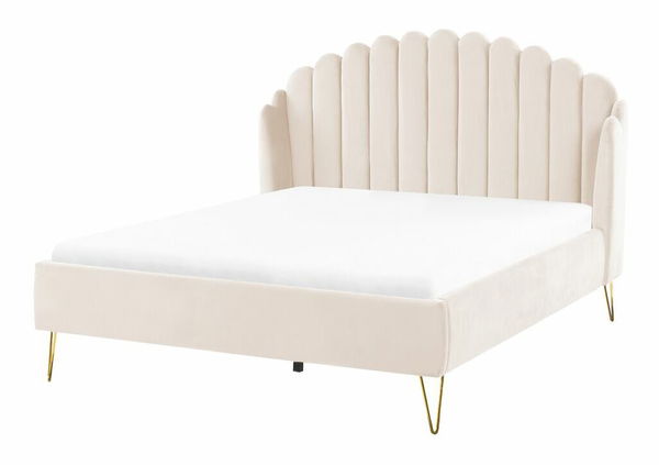 Franciaágy 140 cm Alise (bézs bársony) (ágyráccsal)