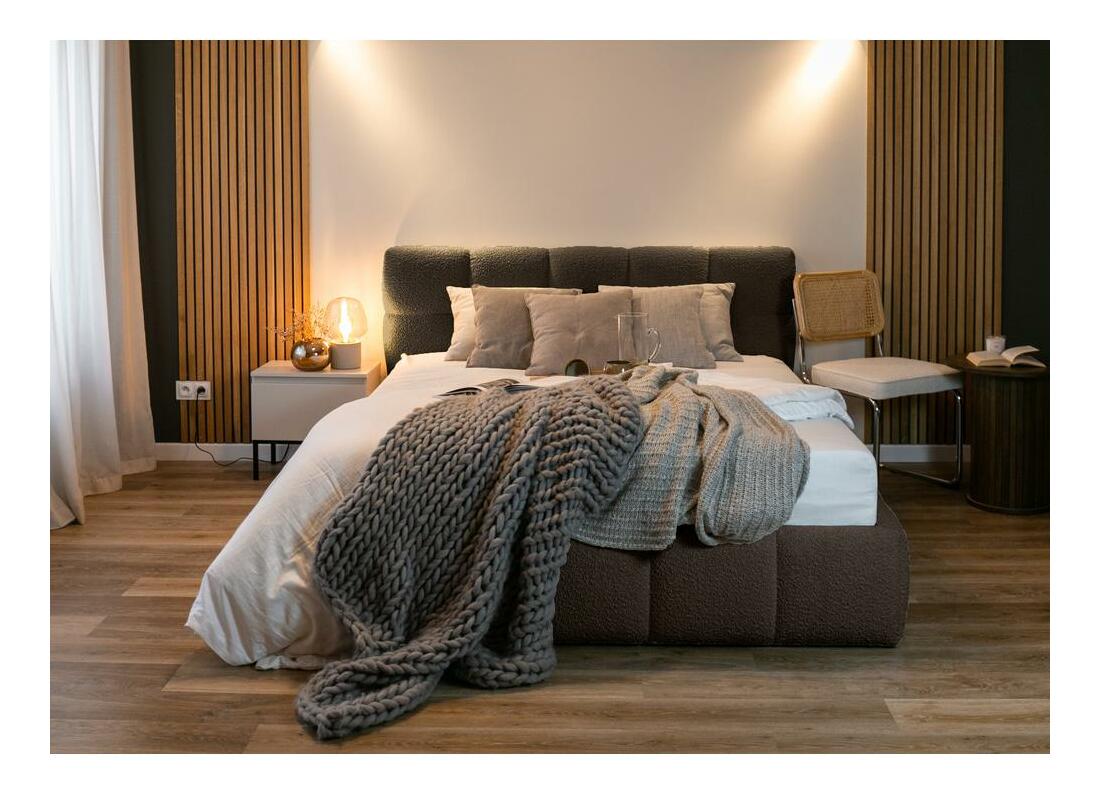 MutasdA tökéletes ágyat keresi, amely megfelel a legmagasabb elvárásoknak kényelem, stílus és funkcionalitás tekintetében? Bemutatunk Önnek egy kárpitozott ágyat - egy olyan bútort, amely teljes mértékben megfelel az Ön igényeinek. A kárpitozott ágy a funkcionalitás és a modern dizájn tökéletes kombinációja, amely eleganciát és stílust kölcsönöz hálószobájának. A kényelmet és az esztétikát szem előtt tartva tervezték, ez az ágy biztosan vonzza a tekintetét. A stílusos fejtámlát úgy tervezték, hogy tökéletesen illeszkedjen az alap lekerekített szögletes formáihoz. Ez az integrált kompozíció eleganciát és harmóniát kölcsönöz az ágynak. A teljes szerkezet lekerekített formái kiemelik a bútor modern jellegét, aminek köszönhetően a belső tér igazi díszévé válik. A teljes szerkezet lekerekített formái hangsúlyozzák a bútor modern jellegét, ami igazi belső dekorációvá teszi. A fa gördülő keret az ágy másik előnye. Tartós fából készült, szilárd matractámaszt és rugalmasságot biztosít, amely hozzájárul az alvás kényelméhez. Az ágy további előnye, hogy két különböző szövet közül választhat több színben. Színek és textúrák széles skálájából választhat egyéni stílusához és hálószobadekorációjához. Válasszon egy ágyat, és élvezze a kényelmet, az eleganciát és a funkcionalitást. Termék részletek: kárpitozott fejtámla stílusos lekerekített négyzetekkel, a fejtámla hátulja fekete béléssel borított, hálórész: 140x200 cm, fa hengerelt keret az árban, hálórész magassága: 35 cm! Kárpitozott bútorszövet Legend 07 barna színben, A Legend szövet abszolút legenda a textilek világában. Egyedülálló tulajdonságai rendkívül kívánatossá teszik a fényűző felületek és minőségi anyagok szerelmesei körében. Boucle szövetből készült, amelynek jellegzetes szerkezete finom barázdákra emlékeztet. Ezek a hurkok egyedi megjelenést és finom árnyalatok adnak egyedi karaktert az anyagnak. A Legend szövet vastag szövése garantálja annak kivételes tartósságát és ellenálló képességét a mindennapi használat során. Ennek köszönhetően biztos lehet benne, hogy az anyag intenzív használat mellett is hosszú évekig megőrzi gyönyörű megjelenését. A modell 140 cm, 160 cm és 180 cm szélességben kapható.