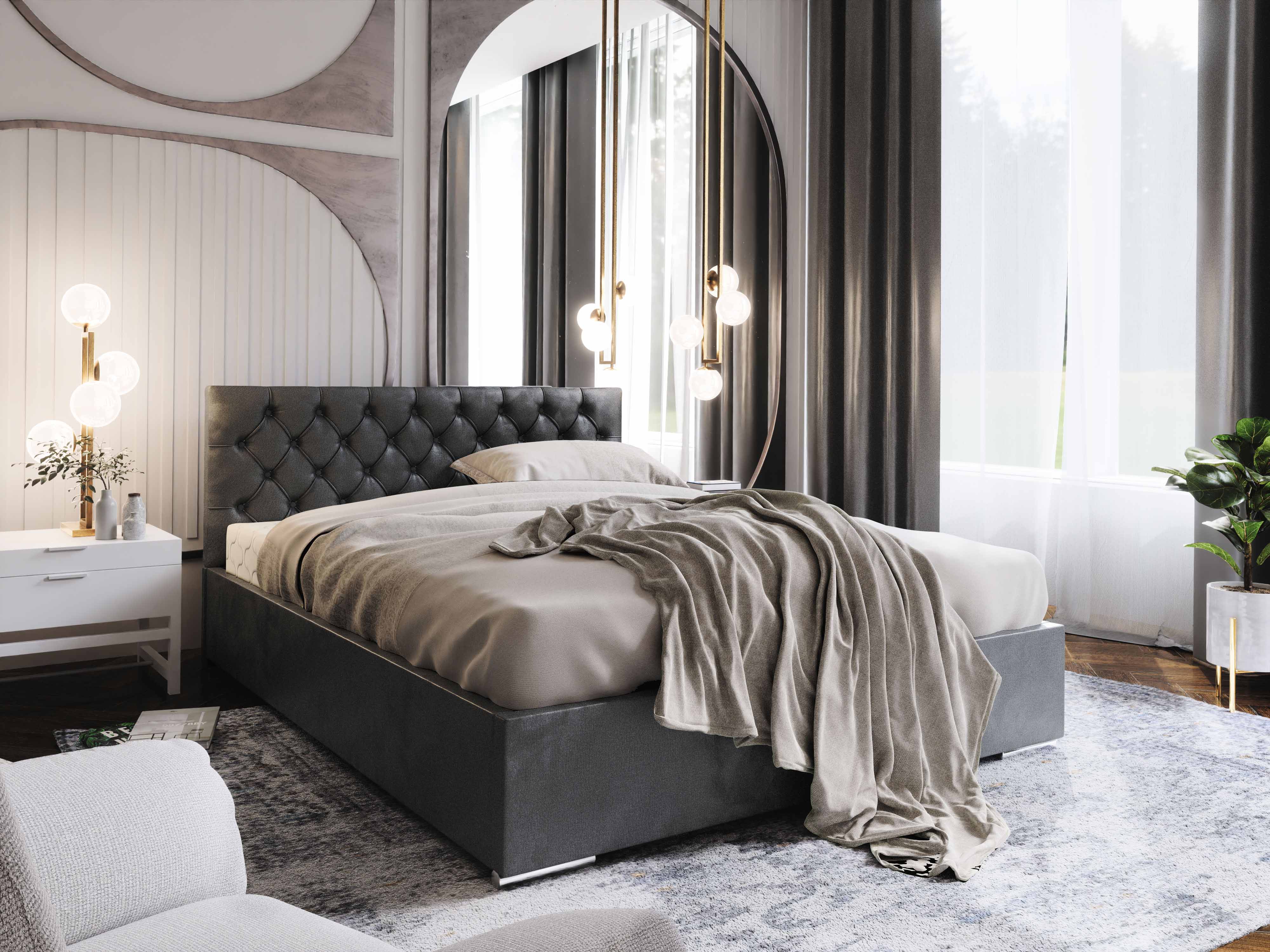 Franciaágy 140 cm Danita (sötétszürke) (ágyráccsal és tárolóhellyel)