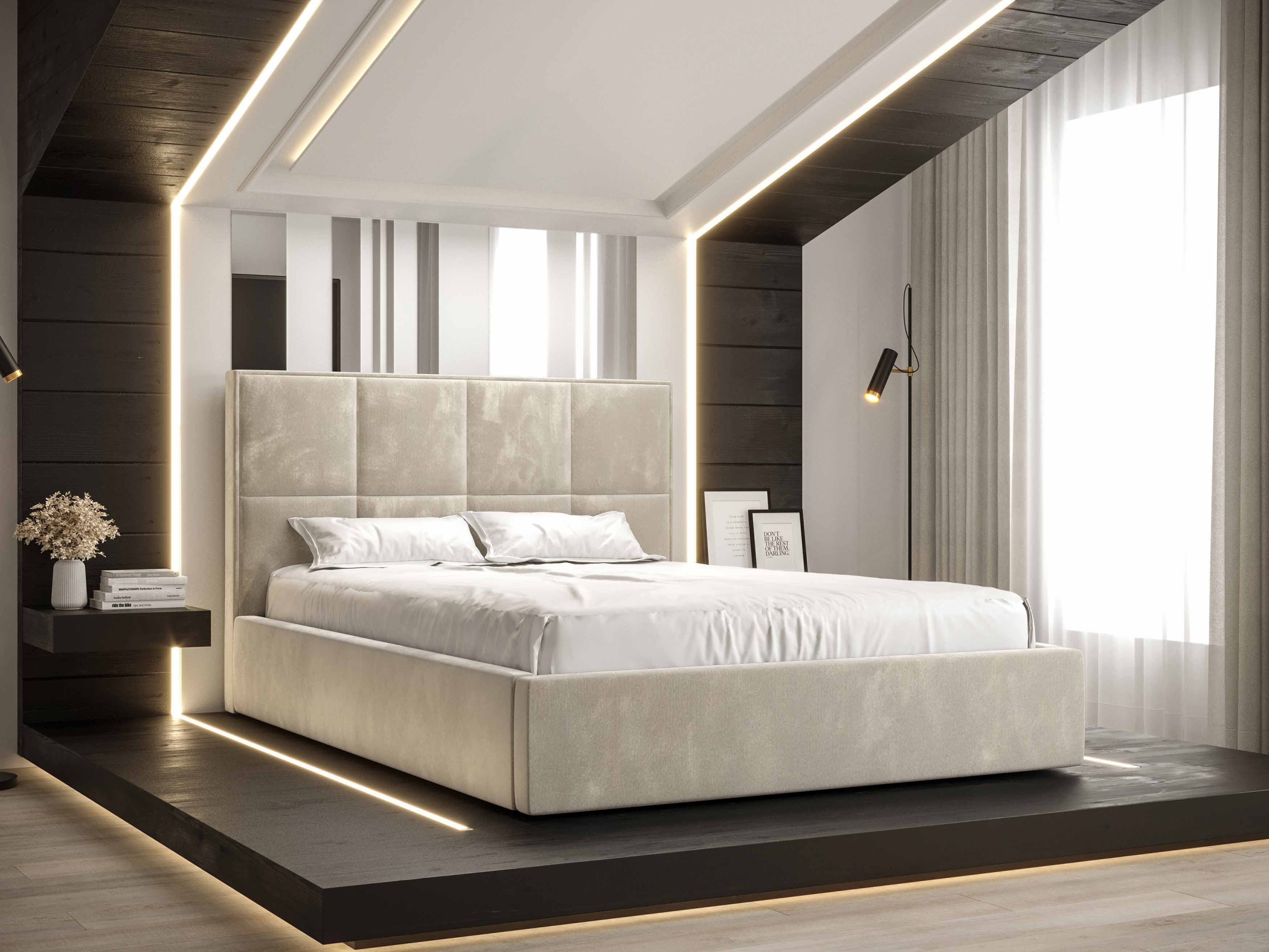 Franciaágy 140 cm Gino (bézs) (ágyráccsal és tárolóhellyel)