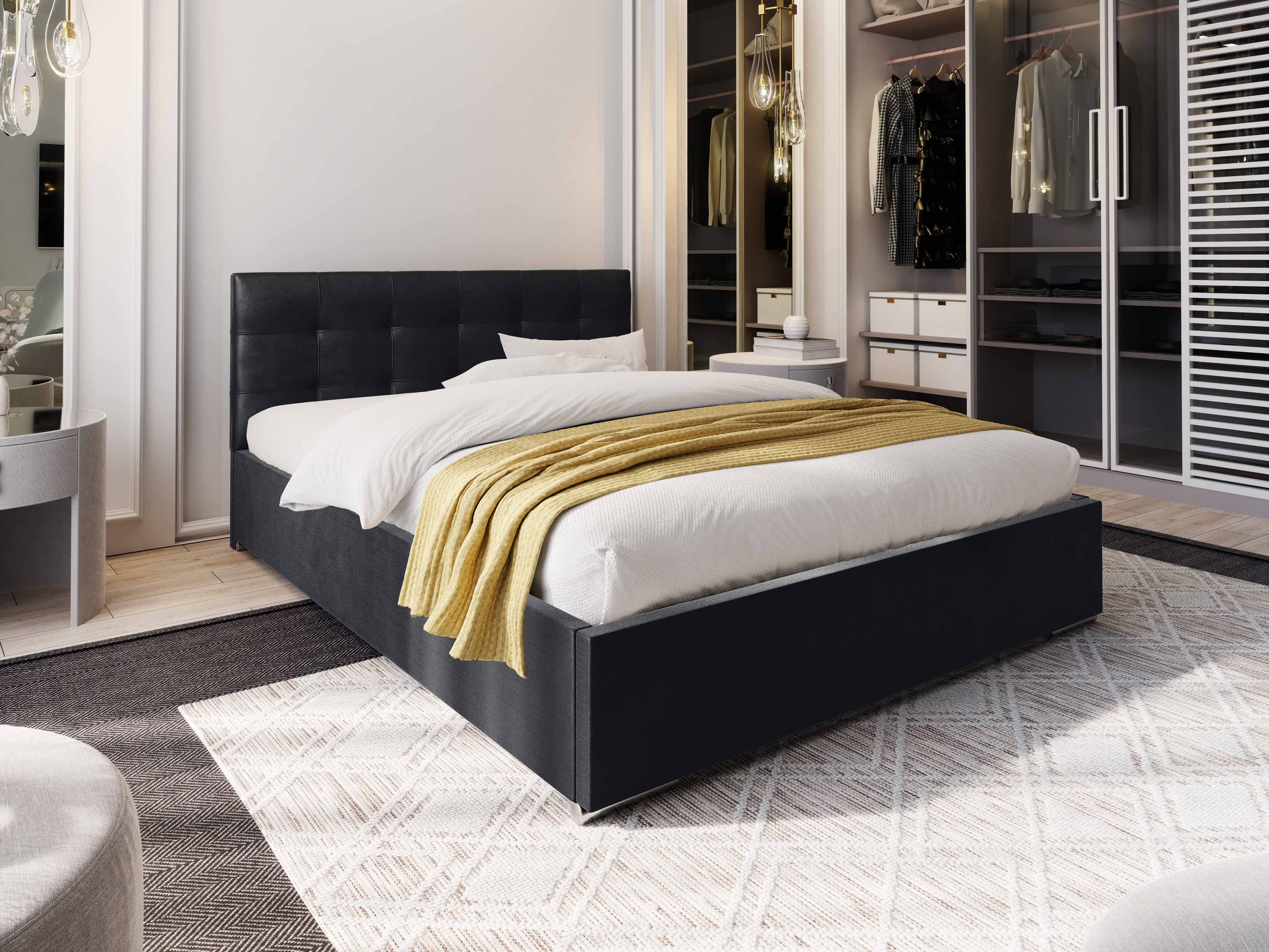 Franciaágy 140 cm Hermila (fekete) (ágyráccsal és tárolóhellyel)