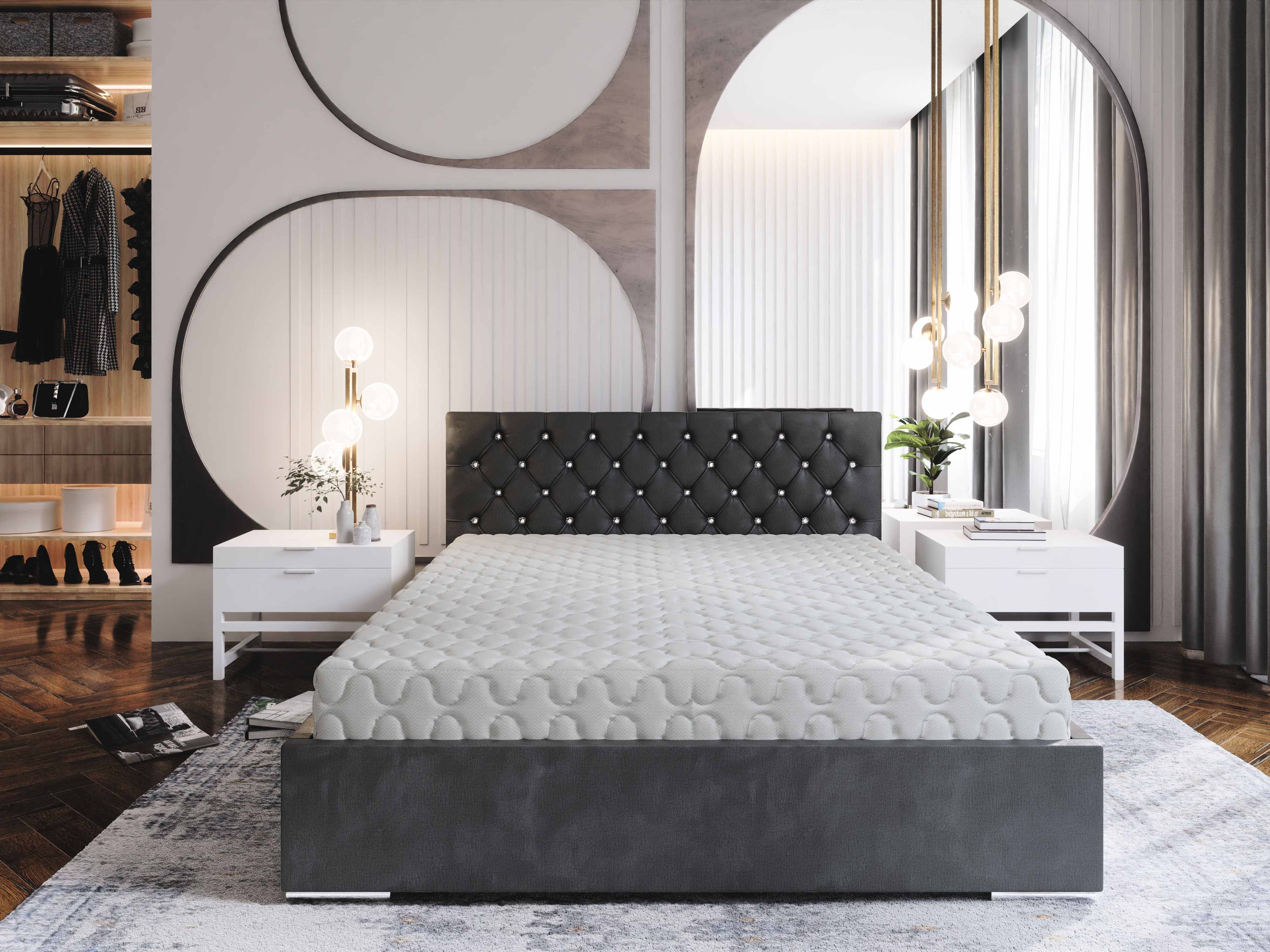 Franciaágy 140 cm Kerry (sötétszürke) (ágyráccsal és tárolóhellyel)
