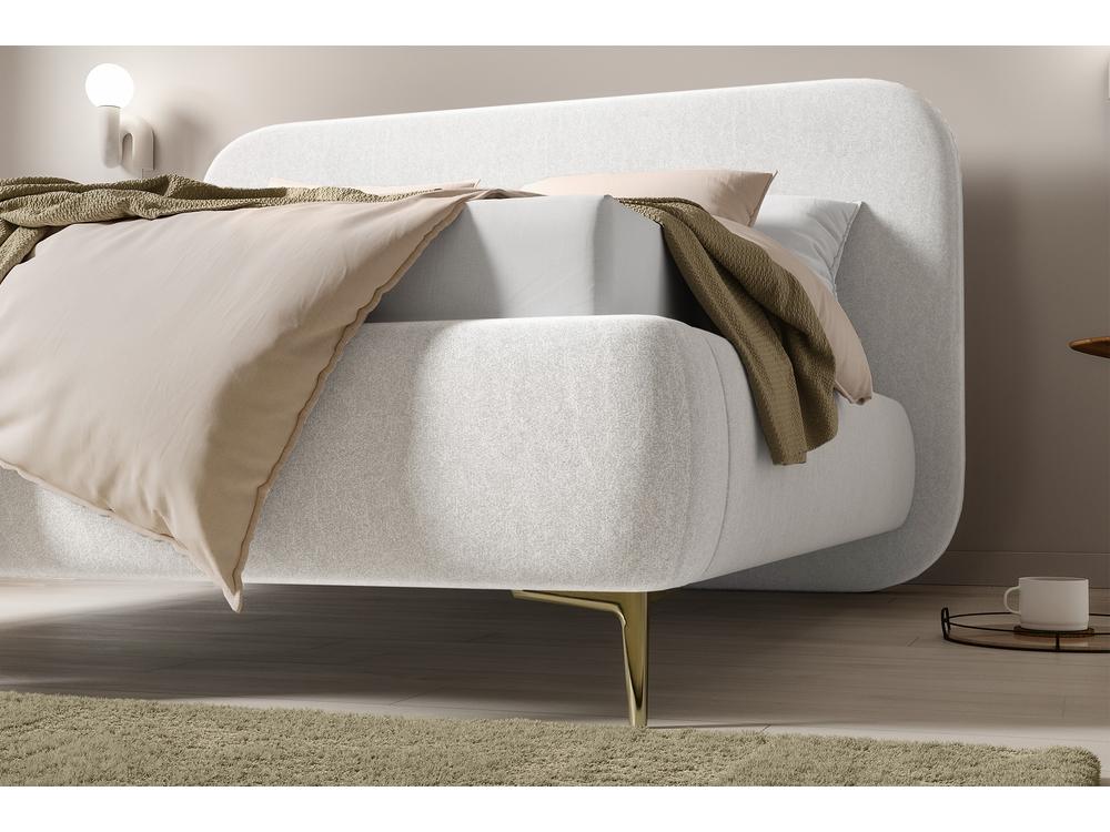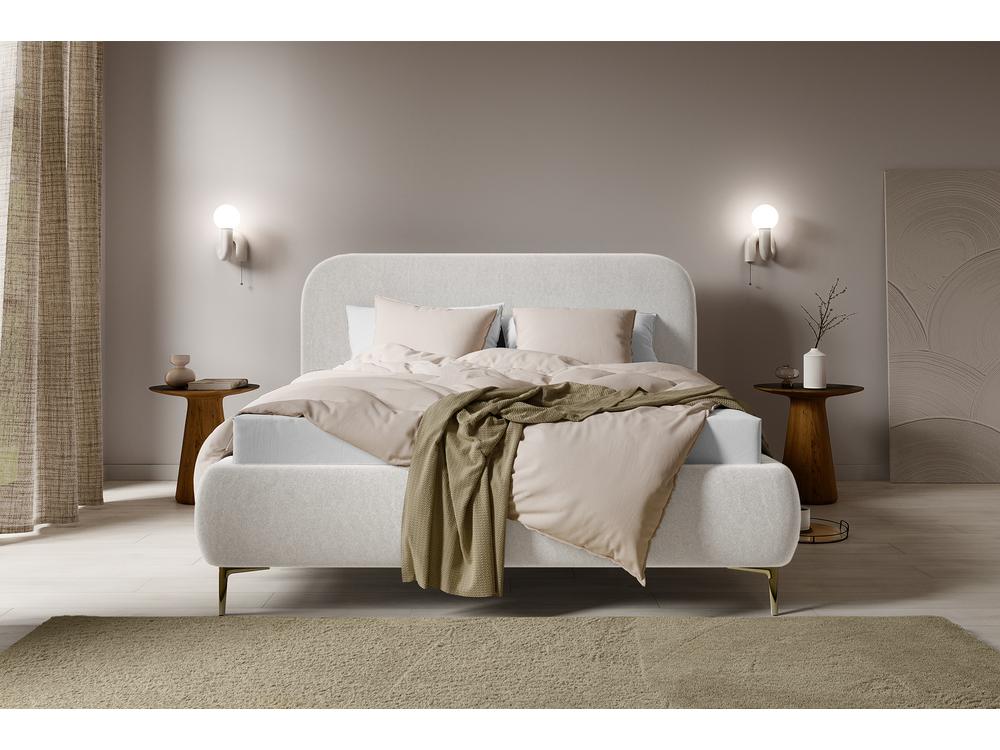 Nagyra értékeli az eredeti formákat a belső terekben? Válassz olyan kárpitozott ágyat, amely eredeti, lekerekített fejtámlájával vonzza magára a figyelmet. A fejtámla az egész ágyhoz hasonlóan puha bársony szövettel van kárpitozva, így stílusos megjelenése mellett kiválóan alkalmas esti olvasásra vagy vasárnapi reggelire az ágyban és kényelmes támasztást nyújt a hátnak. Az egész alapja a magas fa lábak, amelyek stabil tartást biztosítanak a szerkezetnek. Termékleírás: hálófelület: 140/200 cm lábszín: arany favázas fa lábakat nagy ellenállás és stabilitás jellemzi. Az ágy világos bézs színű Castel 03 szövettel kárpitozott. A Castel puha, sima szövet, amelyet nagy súrlódás-, kopás- és foltosodási ellenállás jellemez, így ideális mindennapi bútorokhoz. További előnye az Easy Clean technológia - az anyag könnyen tisztítható, amely lehetővé teszi a szennyeződések könnyű eltávolítását kevés vízzel és puha ruhával.