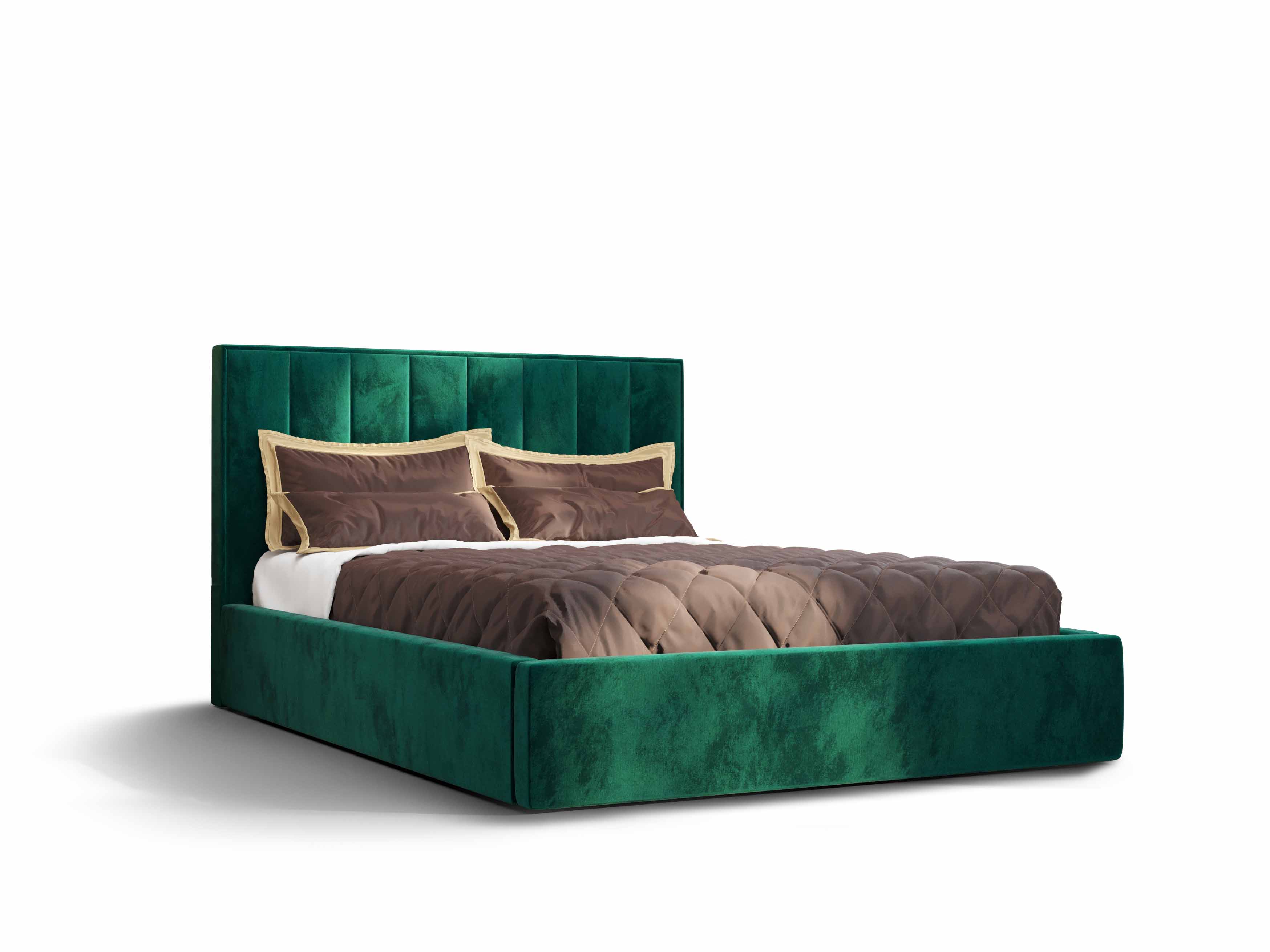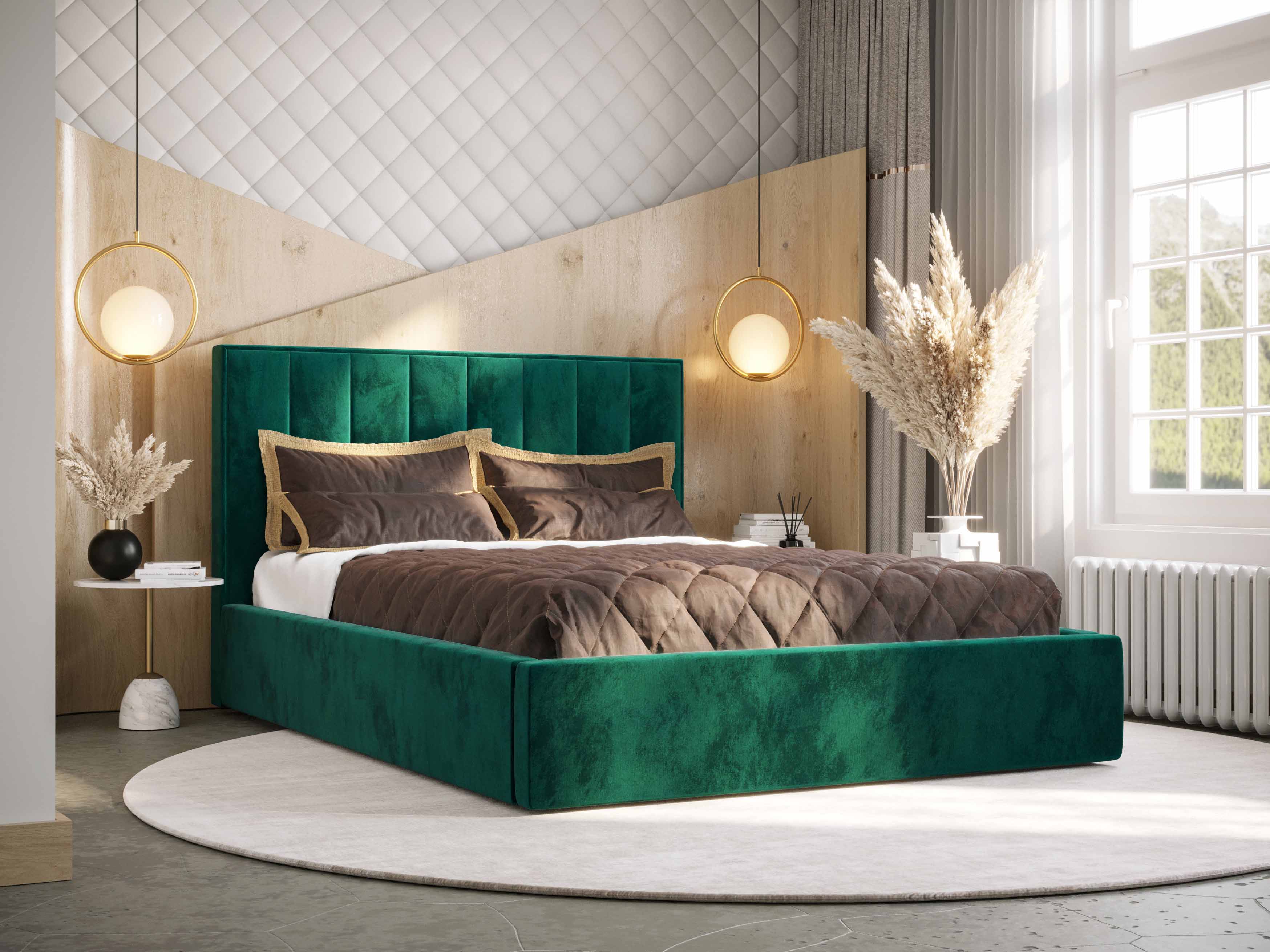 Franciaágy 140 cm Ocie (sötétzöld) (ágyráccsal és tárolóhellyel)