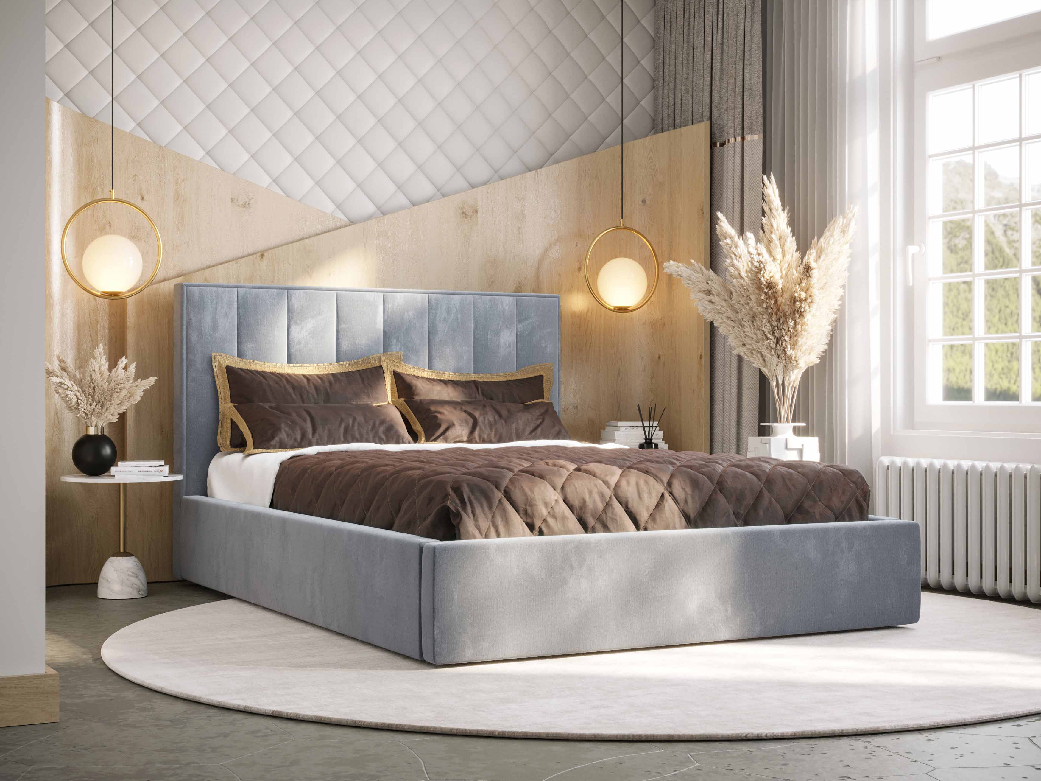 Franciaágy 140 cm Ocie (világoskék) (ágyráccsal és tárolóhellyel)