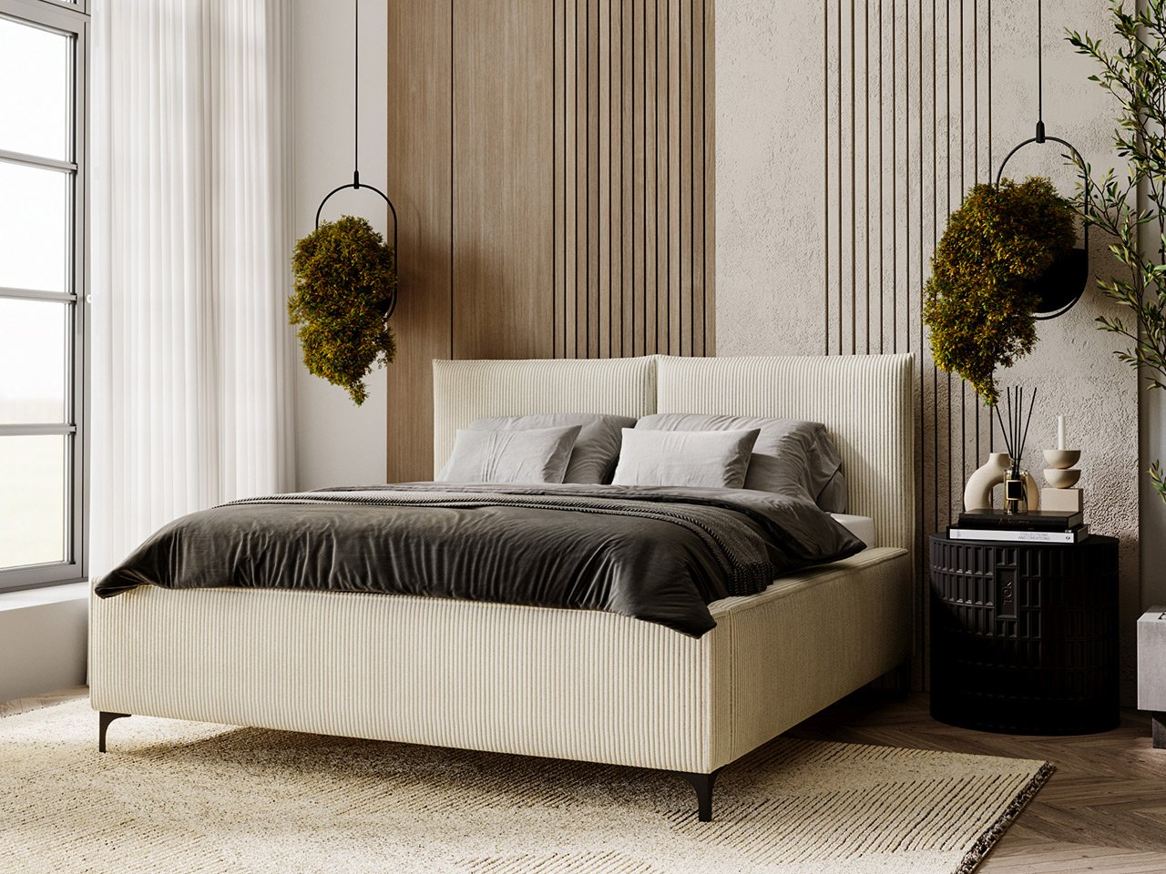 Készen áll, hogy emelje a hálószobája dizájn szintjét? Válassza ki az ágyat, és tegye még stílusosabbá és kényelmesebbé belső terét A le ágy egyedi és stílusos megoldás minden hálószobába. Jellegzetes eleme az ovális alakú homlok, amely egyedi varázst ad neki. Lekerekített formája nem csak esztétikus, hanem funkcionális is, hiszen kényelmesen hátradőlhet könyvolvasás vagy tévézés közben. Ez az ágy ideális választás minimalista és modern belső terekbe, ahol az elegancia és az egyszerűség az első. A dizájner magas lábak egy másik elem, amely megkülönbözteti az ágyat. Ezek az elegáns lábak könnyedséget kölcsönöznek neki, és az ágy a padló felett lebegni látszik, ami térhatást kelt és kibővíti a hálószobát. az ágyhoz mellékelt fém lécváz szilárd tartást és tartósságot biztosít. Ennek köszönhetően nyugodtan alhat, ha tudja, hogy az ágy stabil és tartós. Az egyik fő jellemzője, amely kiemeli az ágyat, a gázrugók. Nekik köszönhetően az ágy rugalmas és sima matracemelő rendszerrel rendelkezik, amely kényelmes és könnyű hozzáférést tesz lehetővé a tárolóhelyhez. Ideális megoldás azok számára, akik maximálisan szeretnék kihasználni hálószobájuk terét. Az ágy másik előnye, hogy két különböző anyagból választhat a kárpitozáshoz. Színek és textúrák széles skálájából választhat egyéni stílusához és hálószoba dekorációjához. Kattintson most, ha többet szeretne megtudni erről az egyedülálló ágyról, és rendelje meg még ma Alakítsa át hálószobáját, és merüljön el a luxusban és a kényelemben a le bed. Részletek: Kárpitozott ovális fejtámla, nem szőtt háttámla Alvóhely: 140x200 cm, fém rácsos kerettel, lábszín: arany, a keret 34 léccel rendelkezik - a válaszfalak sűrű elrendezése jelentősen növeli a kényelmet az ágy használatakor, kétkamrás tárolóhely az ágyneműknek, amely a teljes hálórészt lefedi, a hálórész magassága: 43 cm, kárpitozott bútor Melody 14 krémszínű szövet, a Melody vastag és strapabíró szövet, zsenília stílusban szőtt, áttetsző csomókkal, amelyek kellemes báránygyapjúra emlékeztetnek. Ennek az anyagnak a puhasága és elbűvölő érintése hihetetlen kényelemérzetet nyújt. A hihetetlen, 480 g/m2-es grammsúly olyan kényelmet biztosít, amelyet nehéz megtalálni más anyagok között. A modell 140 cm, 160 cm és 180 cm szélességben kapható.