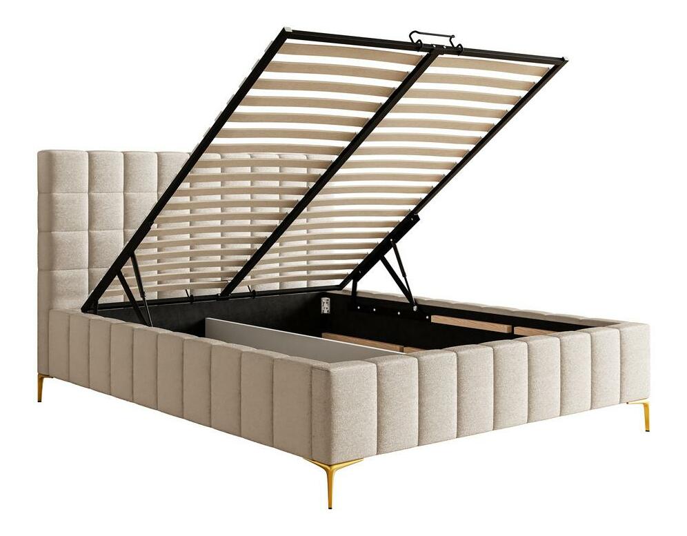 Franciaágy 140 cm Sheldona 140 (ágyráccsal) (tárolóhellyel) (bézs szürke + arany)
