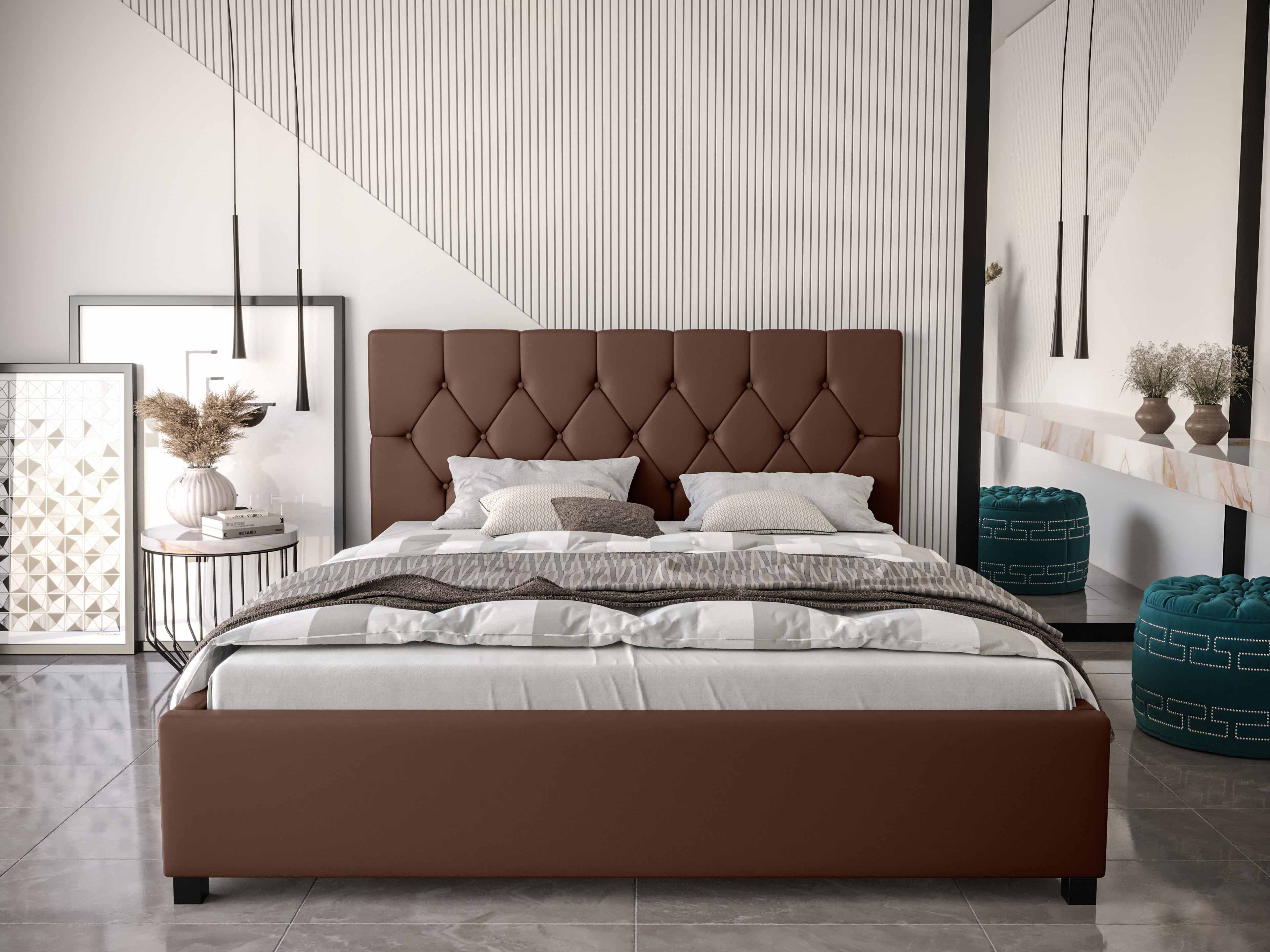 Franciaágy 140 cm Sylvie (barna) (ágyráccsal és tárolóhellyel)