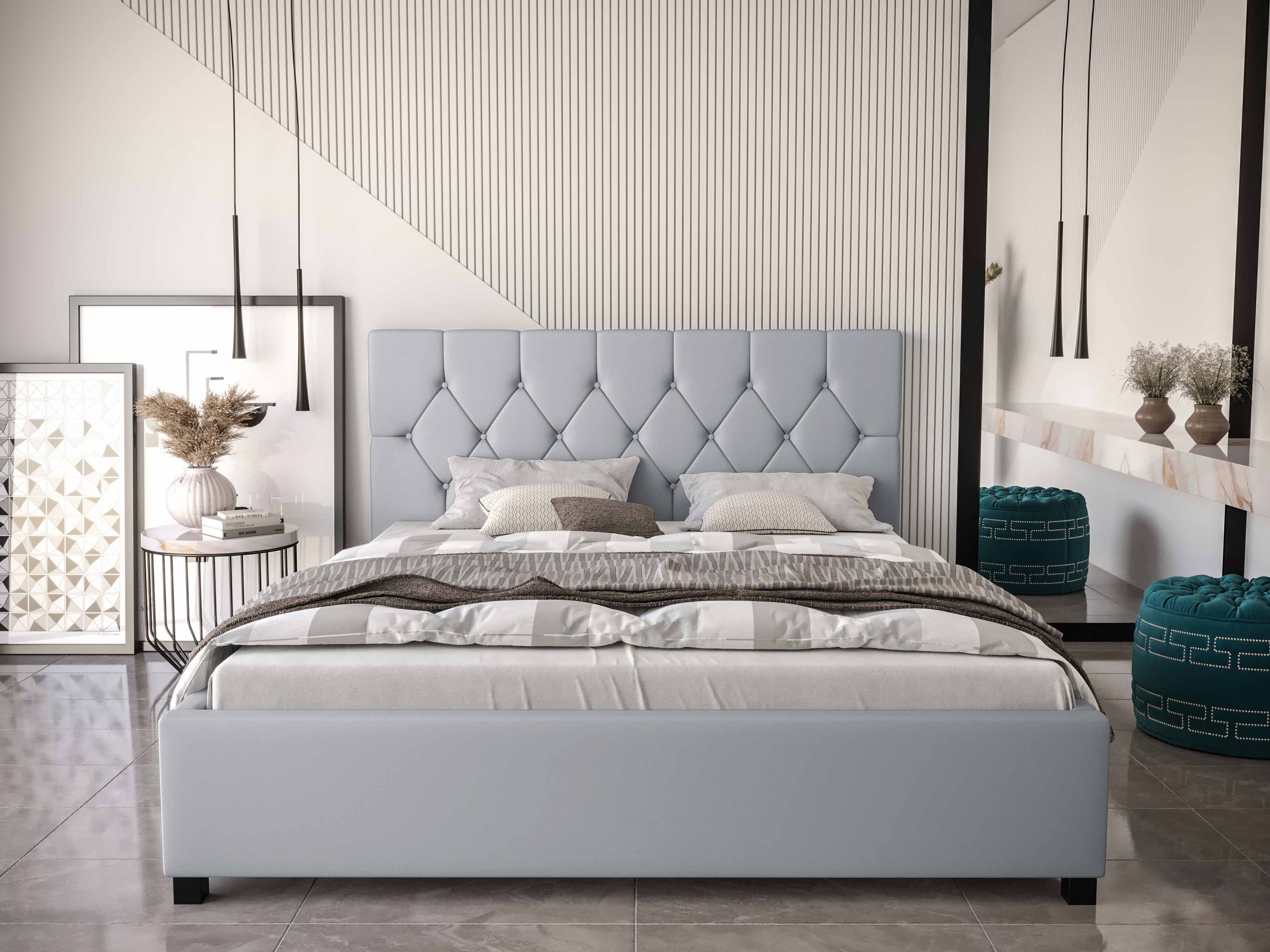 Franciaágy 140 cm Sylvie (szürke) (ágyráccsal és tárolóhellyel)
