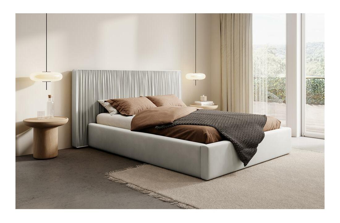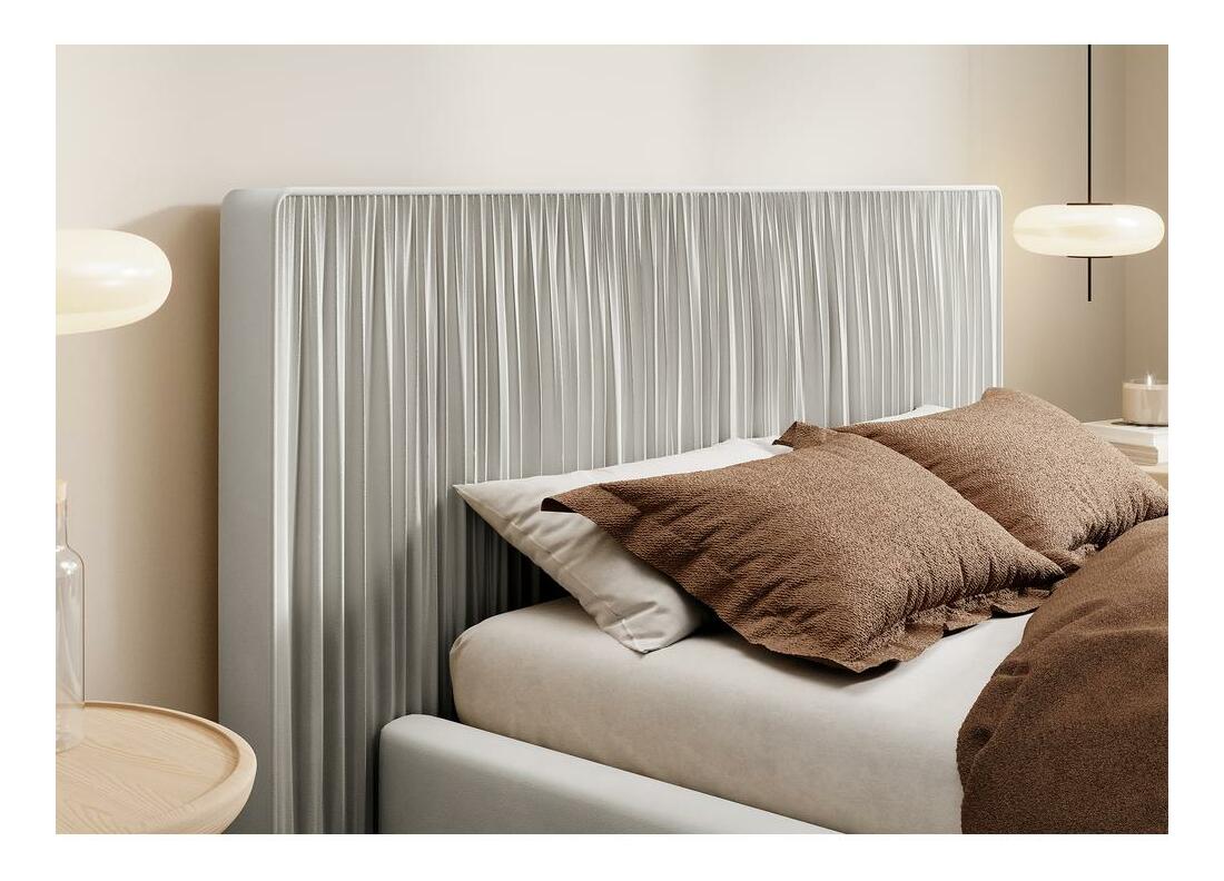 Stílusos ágyat keres hálószobájába? Válasszon kárpitozott ágyat. Szereti a stílusos belső tereket, tele finom szövetekkel és eredeti bútorokkal? Ha a válasz igen, az ágyat Önre gondolva készítették! A modellt kellemes tapintású bársony anyaggal látták el, amely tökéletesen kiegészíti a modern és hangulatos belső tereket. A fejtámla ízléses fodrai varázst és egyedi karaktert kölcsönöznek az egésznek. A fejtámla puha, így boldogan pihentetheti rajta a fejét kedvenc könyve olvasása közben. Az ágyat gázemelőkkel felszerelt fémvázzal szállítjuk, amely megkönnyíti a hozzáférést az ágyneműtárolóhoz anélkül, hogy a hát túlzott terhelése lenne. Fekvőfelület: 140x200 cm. Stílusos ráncok a puha fejtámlán és a kereten. A bútor világos bézs színű Opera szövettel vannak kárpitozva Az Opera a bársony család szövete. Jó kopásállóság, súrlódás és foltosodás jellemzi, így kiváló burkolóanyag lesz a bútorokhoz, amit végső soron a legspontánabb lakók is aktívan használni fognak. Kisgyermekes és háziállatokkal rendelkező háztartások számára ajánlott. Lángálló szövet, maximális terhelhetőség 400 kg-ig.