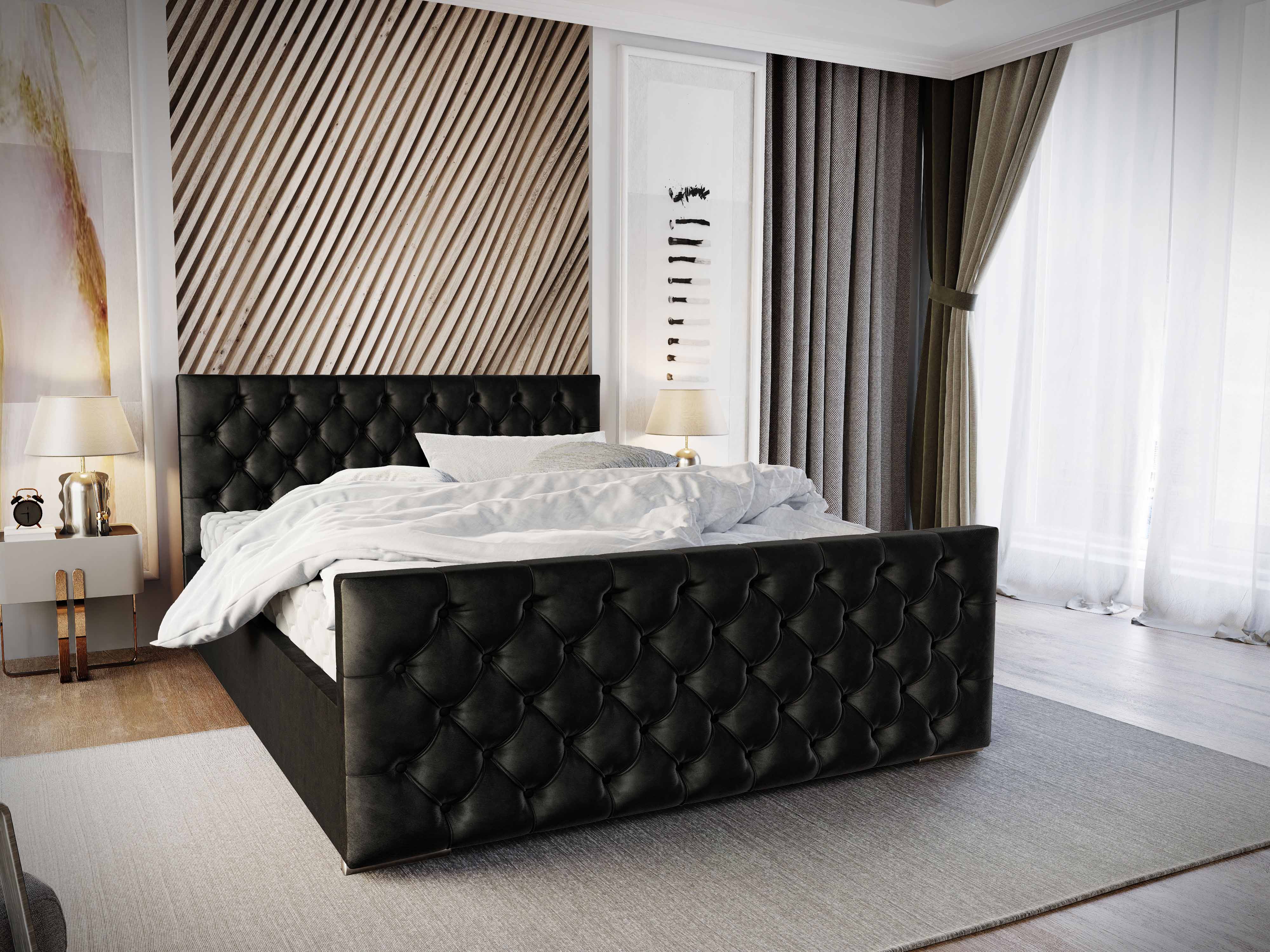 Franciaágy 140 cm Velva (fekete) (ágyráccsal és tárolóhellyel)