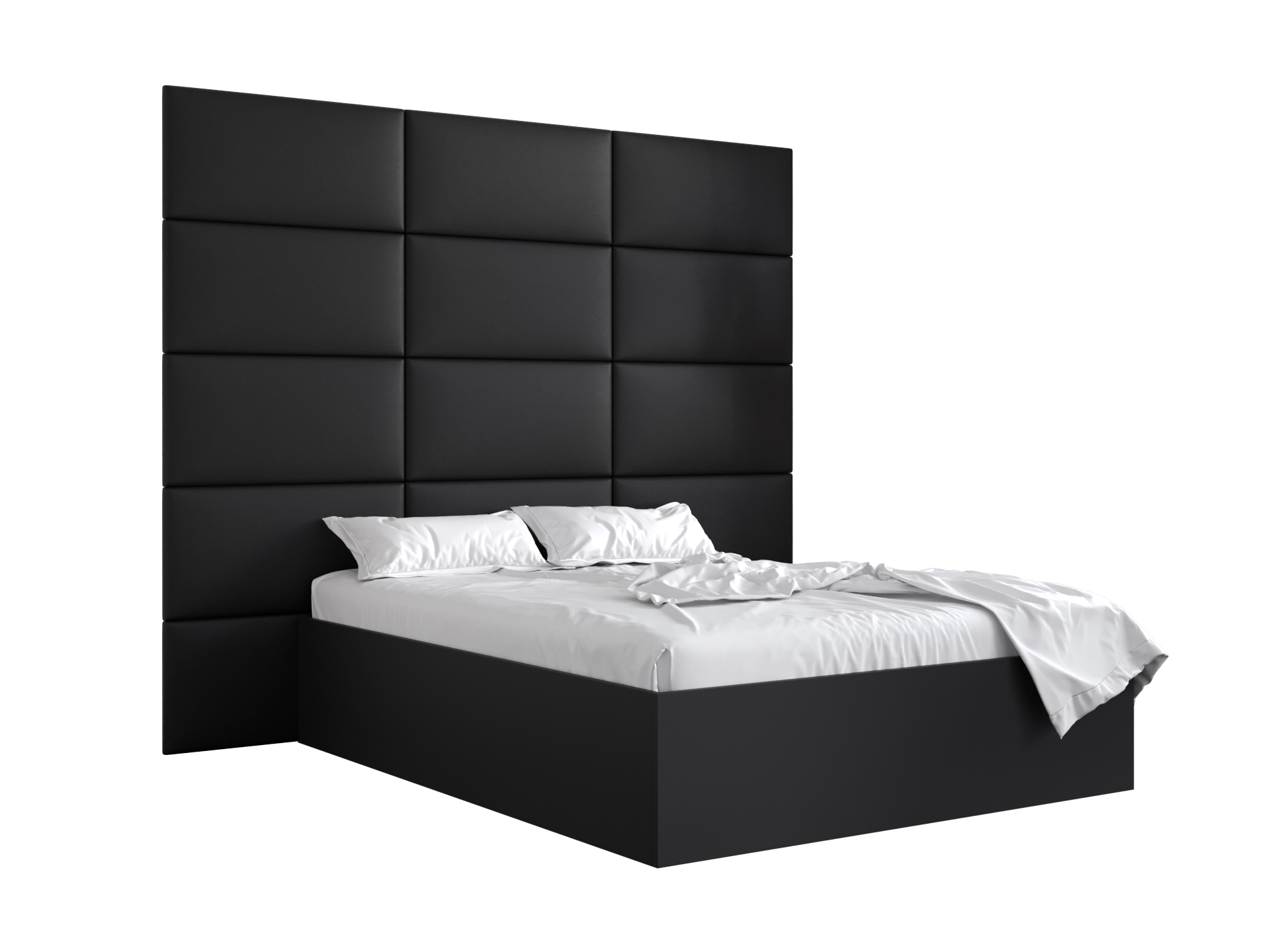 Franciaágy kárpitozott fejtámlával 160 cm Brittany 1 (matt fekete + fekete) (ágyráccsal)