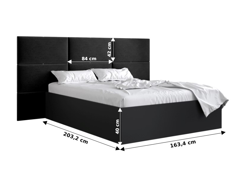 Franciaágy kárpitozott fejtámlával 160 cm Brittany 2 (matt fekete + fekete) (ágyráccsal)
