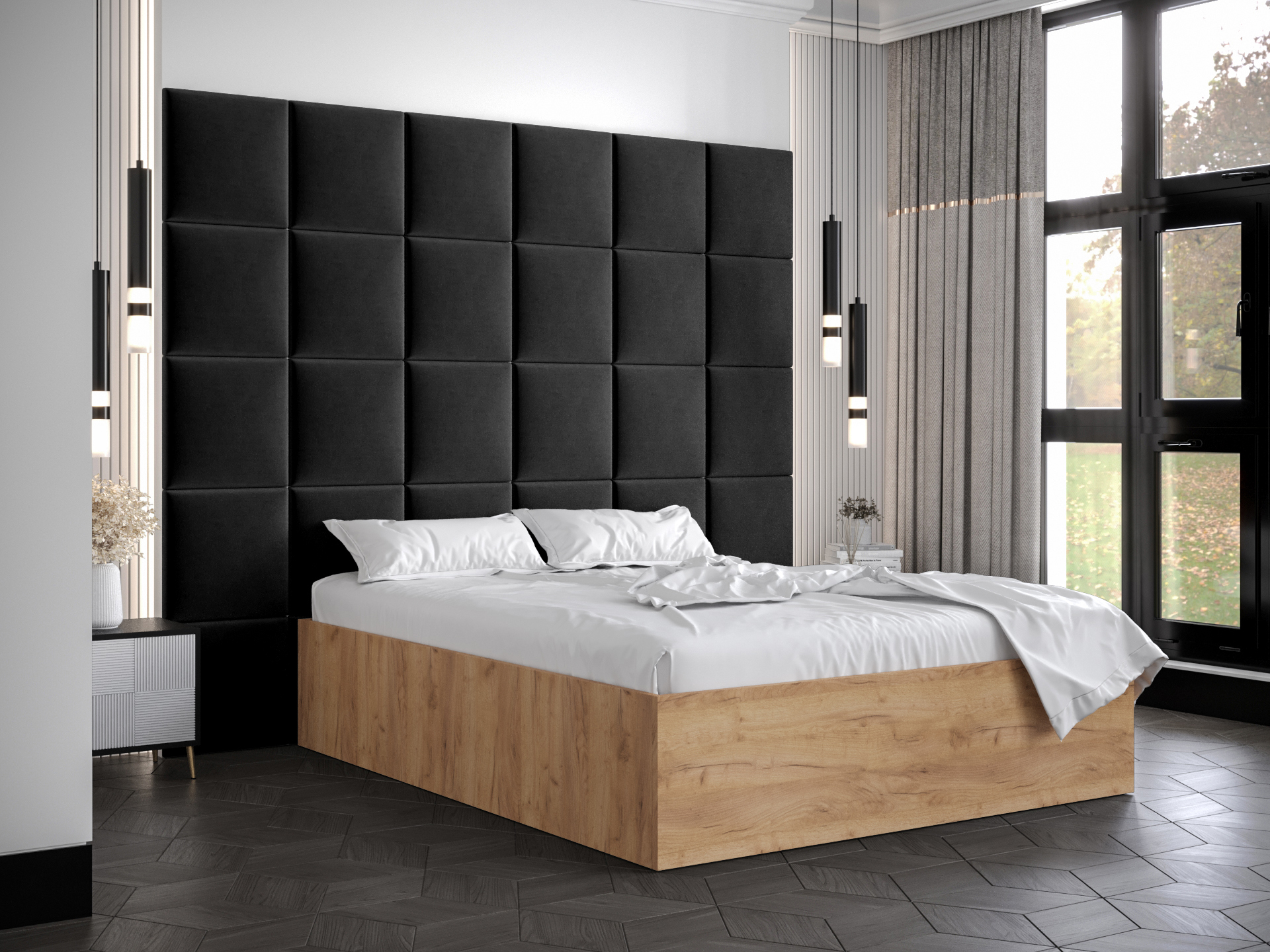 Franciaágy kárpitozott fejtámlával 160 cm Brittany 3 (arany craft tölgy + fekete) (ágyráccsal)