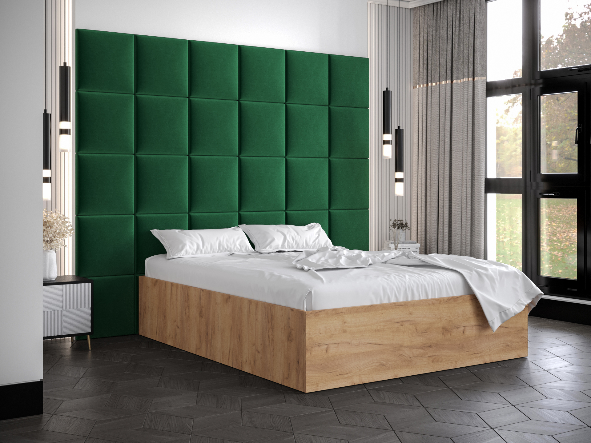 Franciaágy kárpitozott fejtámlával 160 cm Brittany 3 (arany craft tölgy + zöld) (ágyráccsal)