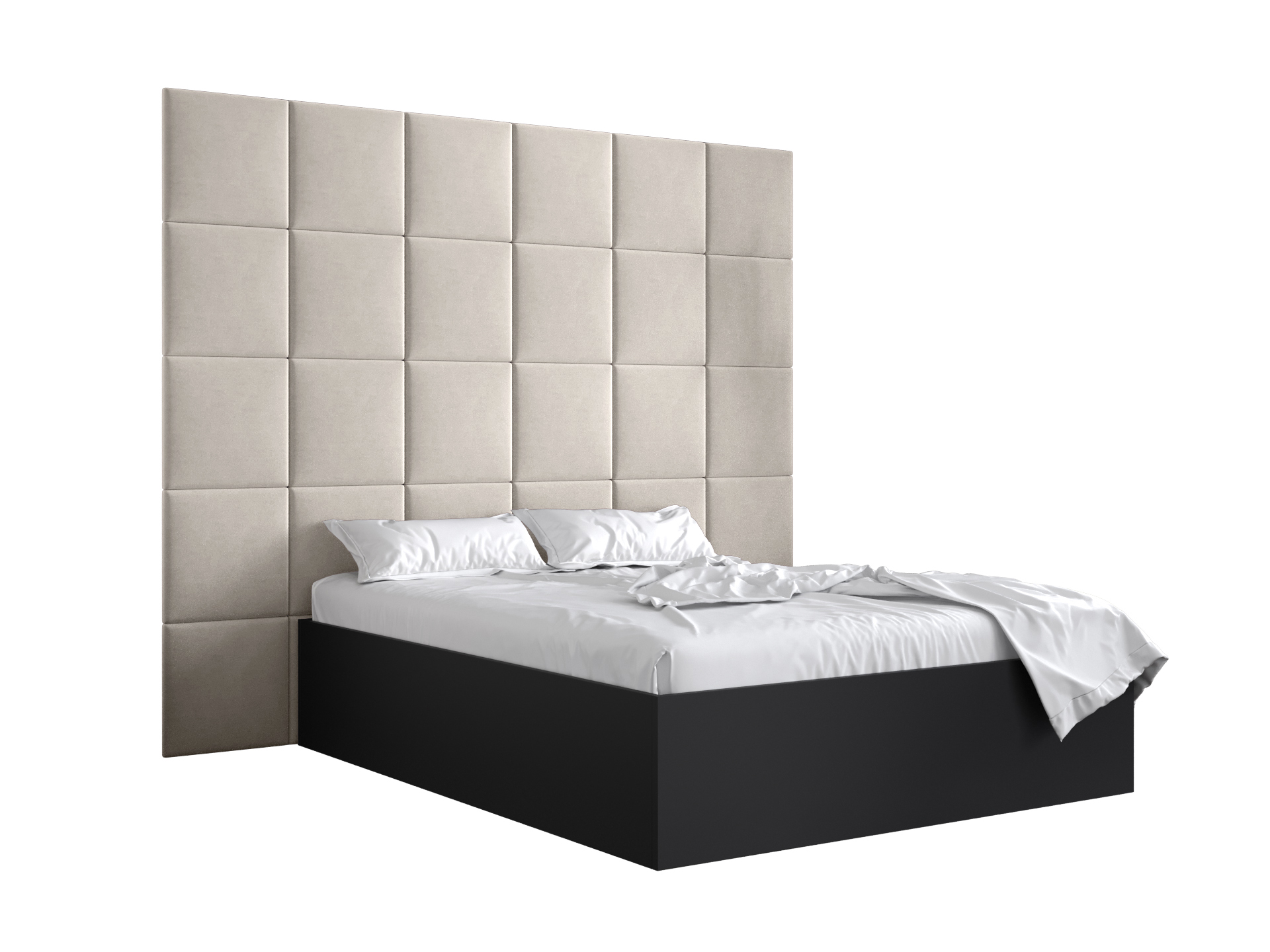 Franciaágy kárpitozott fejtámlával 160 cm Brittany 3 (matt fekete + krém) (ágyráccsal)