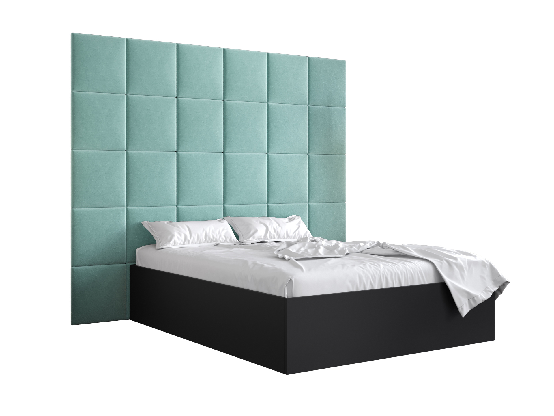 Franciaágy kárpitozott fejtámlával 160 cm Brittany 3 (matt fekete + menta) (ágyráccsal)