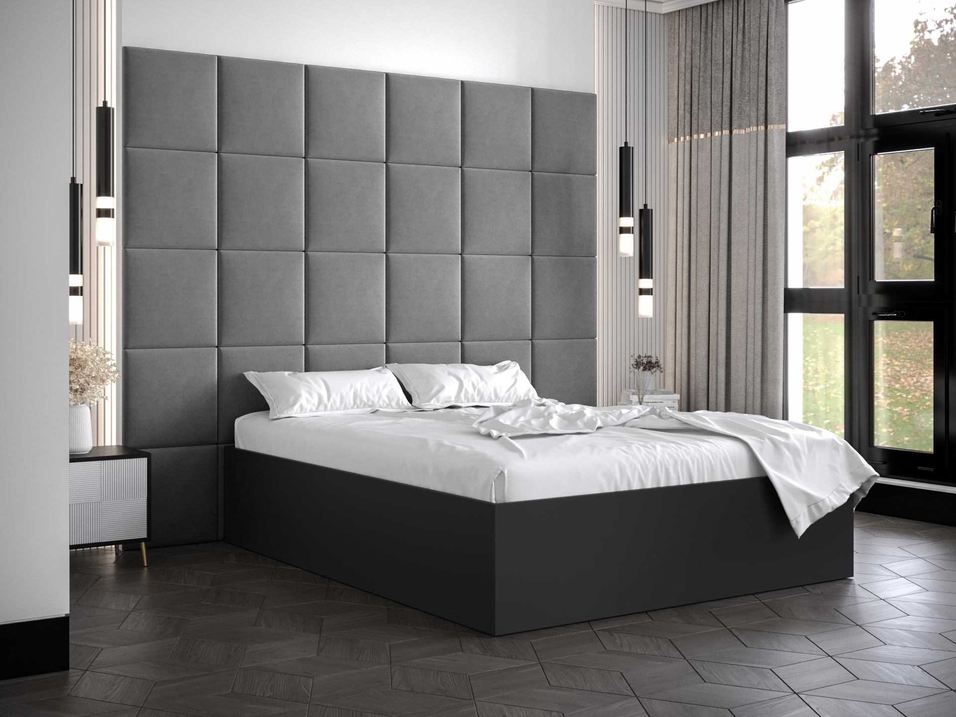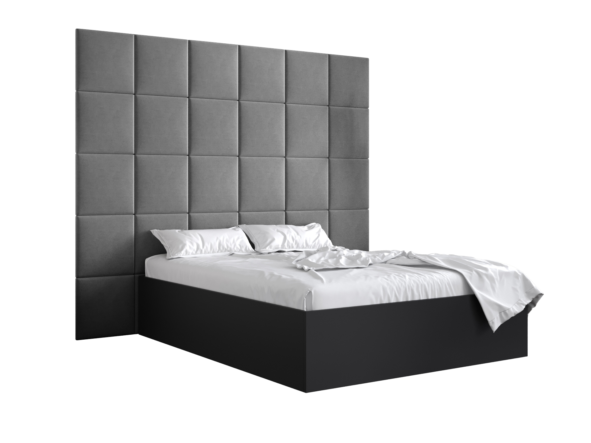 Franciaágy kárpitozott fejtámlával 160 cm Brittany 3 (matt fekete + szürke) (ágyráccsal)