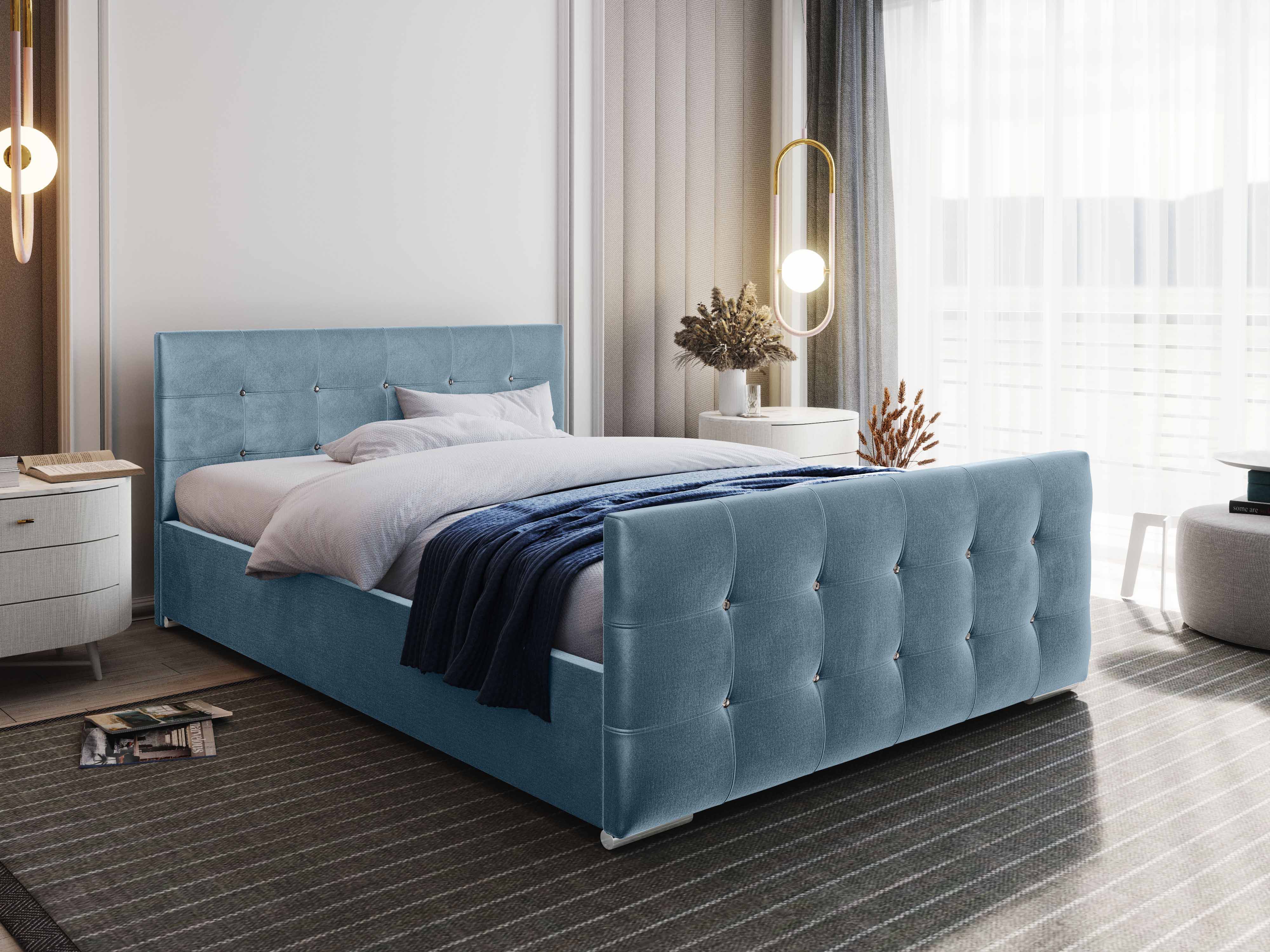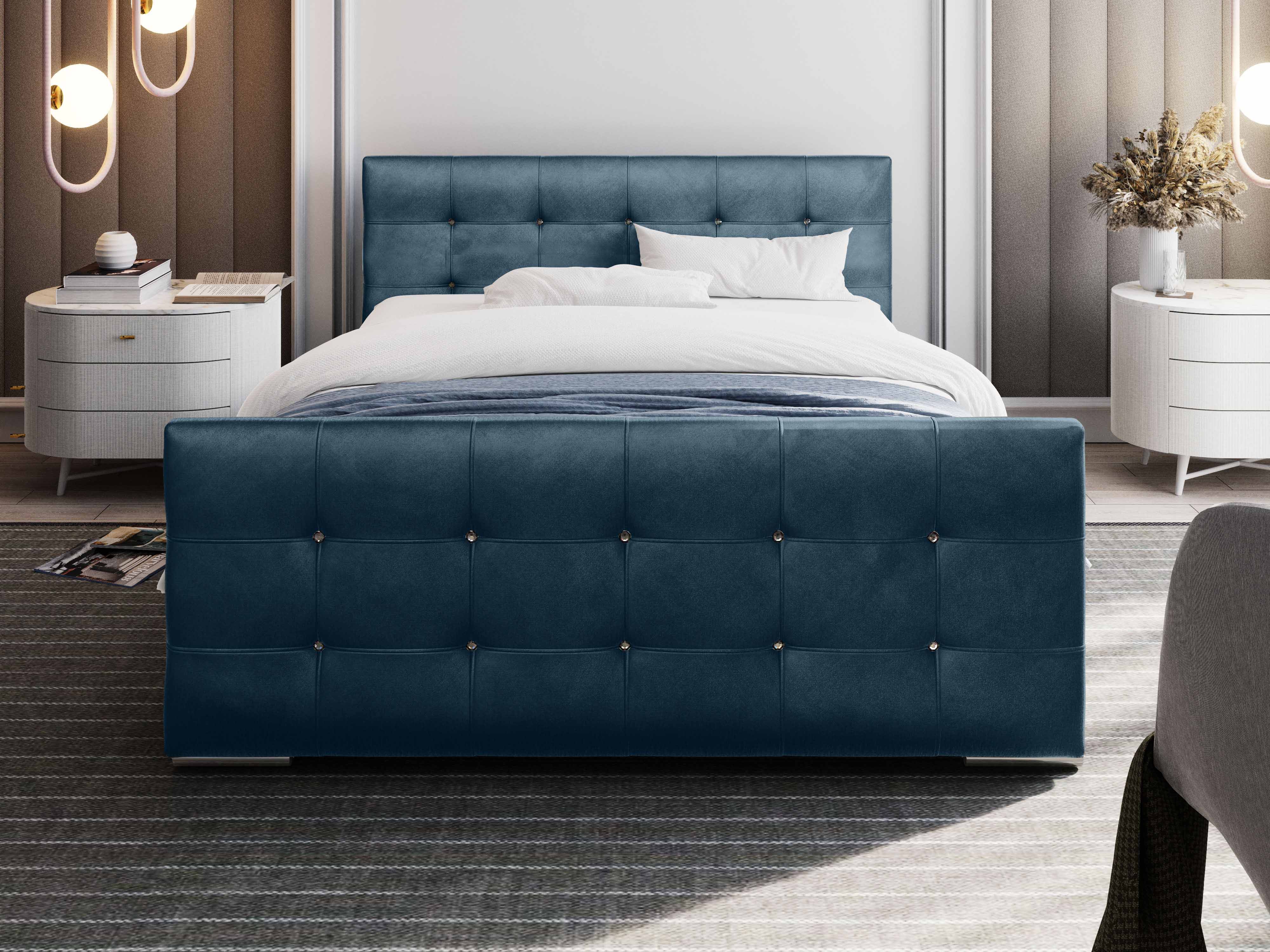 Franciaágy 160 cm Darrin (kék) (ágyráccsal és tárolóhellyel)