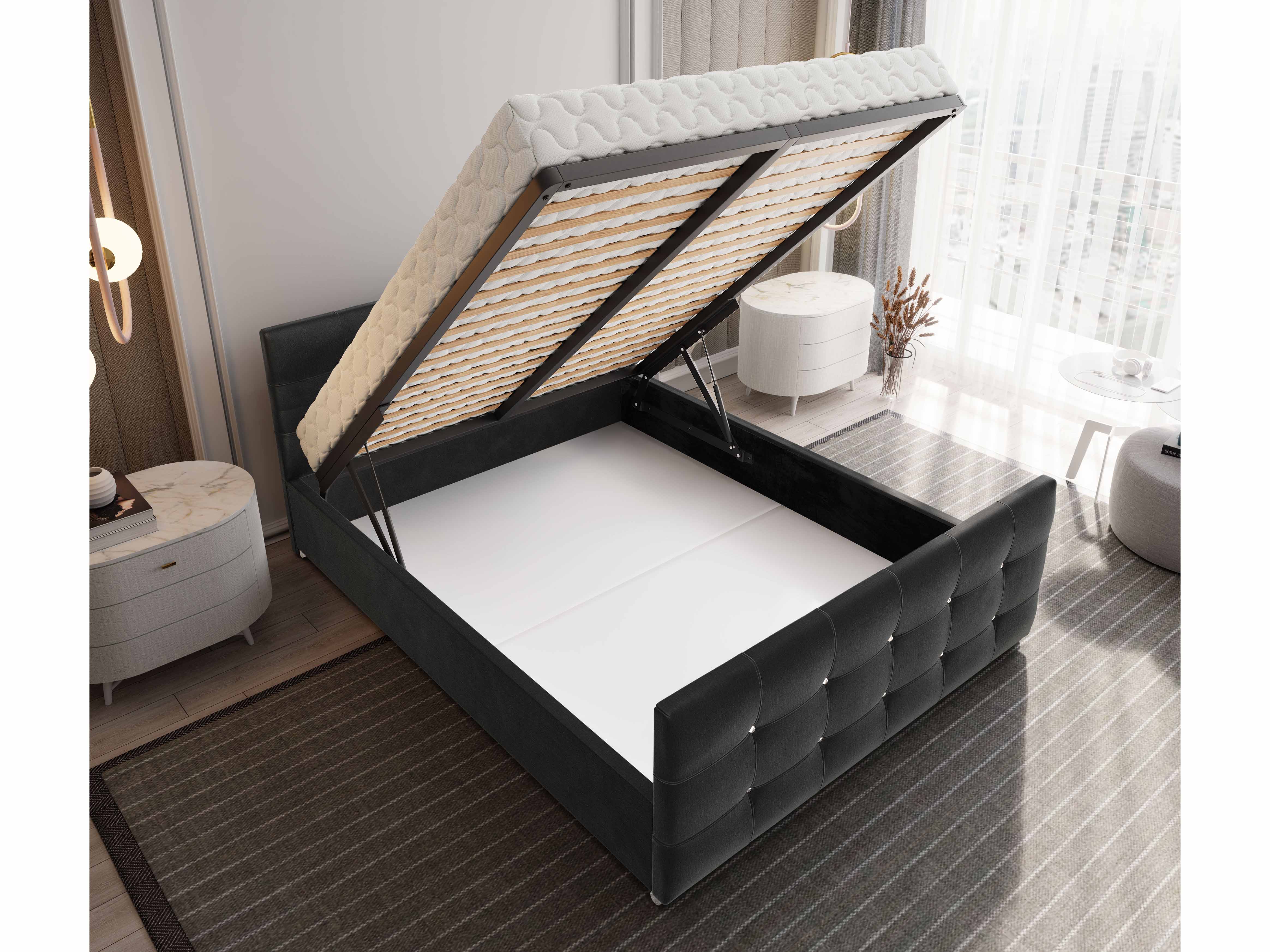 Az ágy rácssal együtt van. A matracot kiválaszthatja és hozzárendelheti internetes üzletünkben.