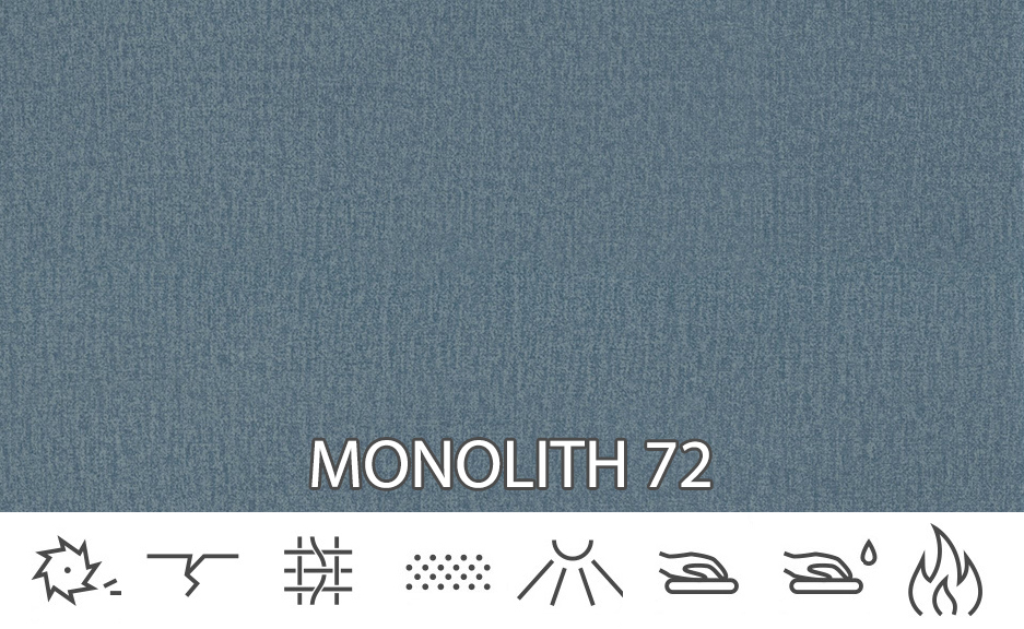 A Monolith egy strapabíró plüss anyag, amely kellemes tapintású. Egy speciális védőréteg borítja, amely hidrofób réteget hoz létre, amely megvédi a kiömlött folyadékok gyors felszívódását. Nagyon ellenáll a kifakulásnak és a foltosodásnak. A szövetet árnyékoló anyag jellemzi. Kárpitápoló szerekkel tisztítható. Nem szabad fehéríteni vagy túl magas hőmérsékletnek kitenni – ne szárítsa a szárítóban.