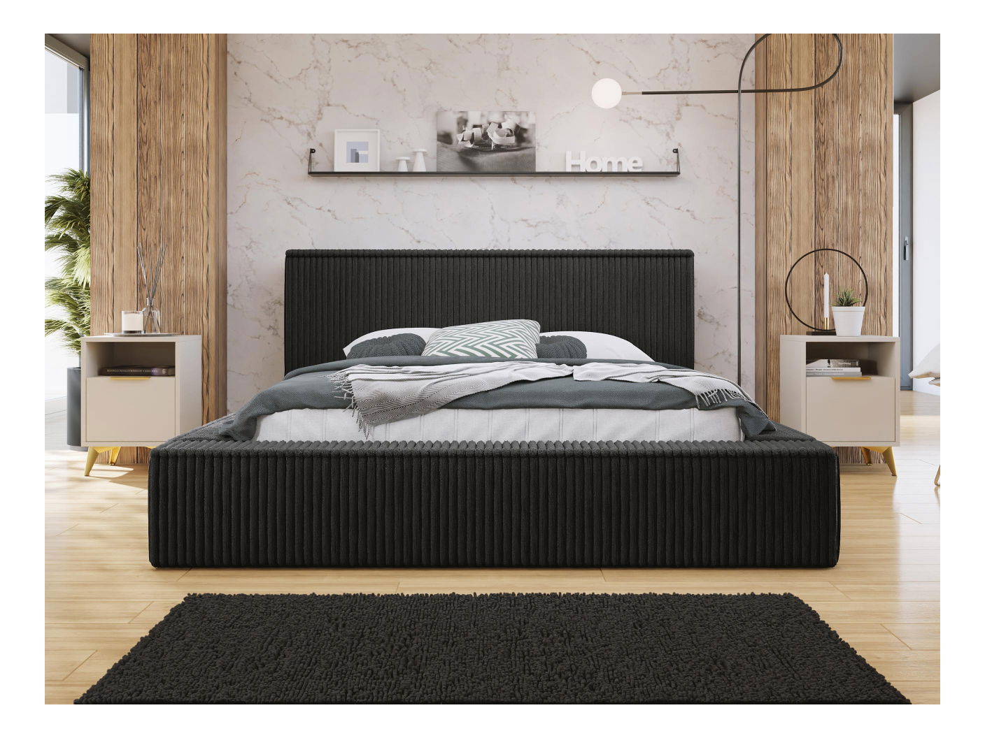 Franciaágy 160 cm Gretty S (fekete) (ágyráccsal) (tárolóhellyel)