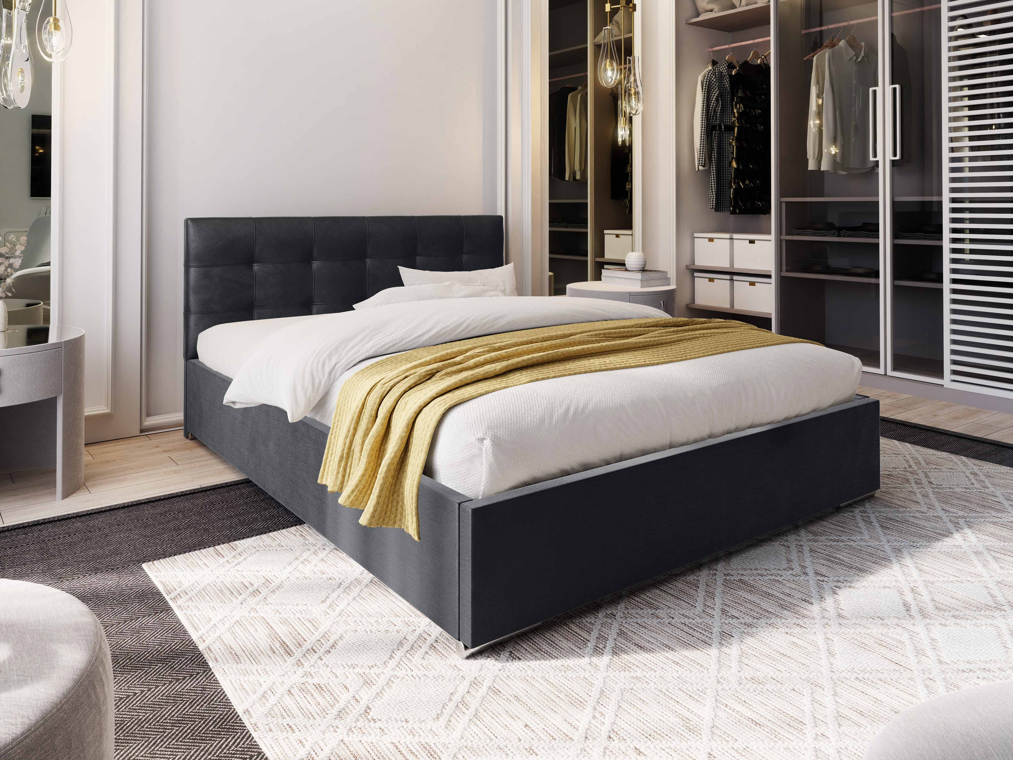 Franciaágy 160 cm Hermila (fekete) (ágyráccsal és tárolóhellyel)