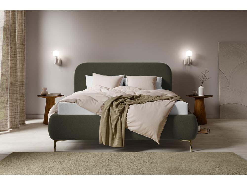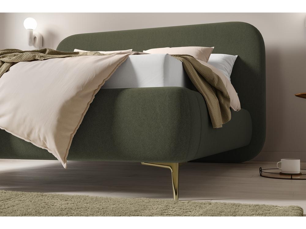 Nagyra értékeli az eredeti formákat a belső terekben? Válassz olyan kárpitozott ágyat, amely eredeti, lekerekített fejtámlájával vonzza magára a figyelmet. A fejtámla az egész ágyhoz hasonlóan puha bársony szövettel van kárpitozva, így stílusos megjelenése mellett kiválóan alkalmas esti olvasásra vagy vasárnapi reggelire az ágyban és kényelmes támasztást nyújt a hátnak. Az egész alapja a magas fa lábak, amelyek stabil tartást biztosítanak a szerkezetnek. Termékleírás: hálófelület: 160/200 cm lábszín: arany favázas fa lábakat nagy ellenállás és stabilitás jellemzi. Az ágy oliva színű Castel 39 szövettel kárpitozott. A Castel puha, sima szövet, amelyet nagy súrlódás-, kopás- és foltosodási ellenállás jellemez, így ideális mindennapi bútorokhoz. További előnye az Easy Clean technológia - az anyag könnyen tisztítható, amely lehetővé teszi a szennyeződések könnyű eltávolítását kevés vízzel és puha ruhával.