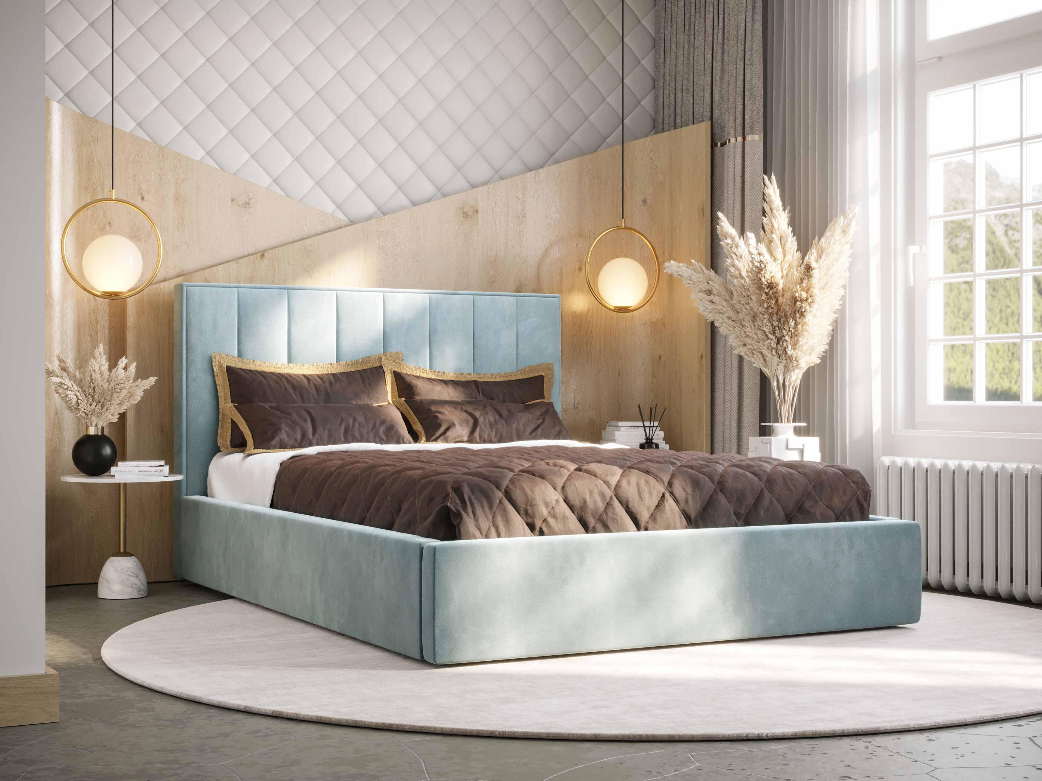 Franciaágy 160 cm Ocie (kék) (ágyráccsal és tárolóhellyel)