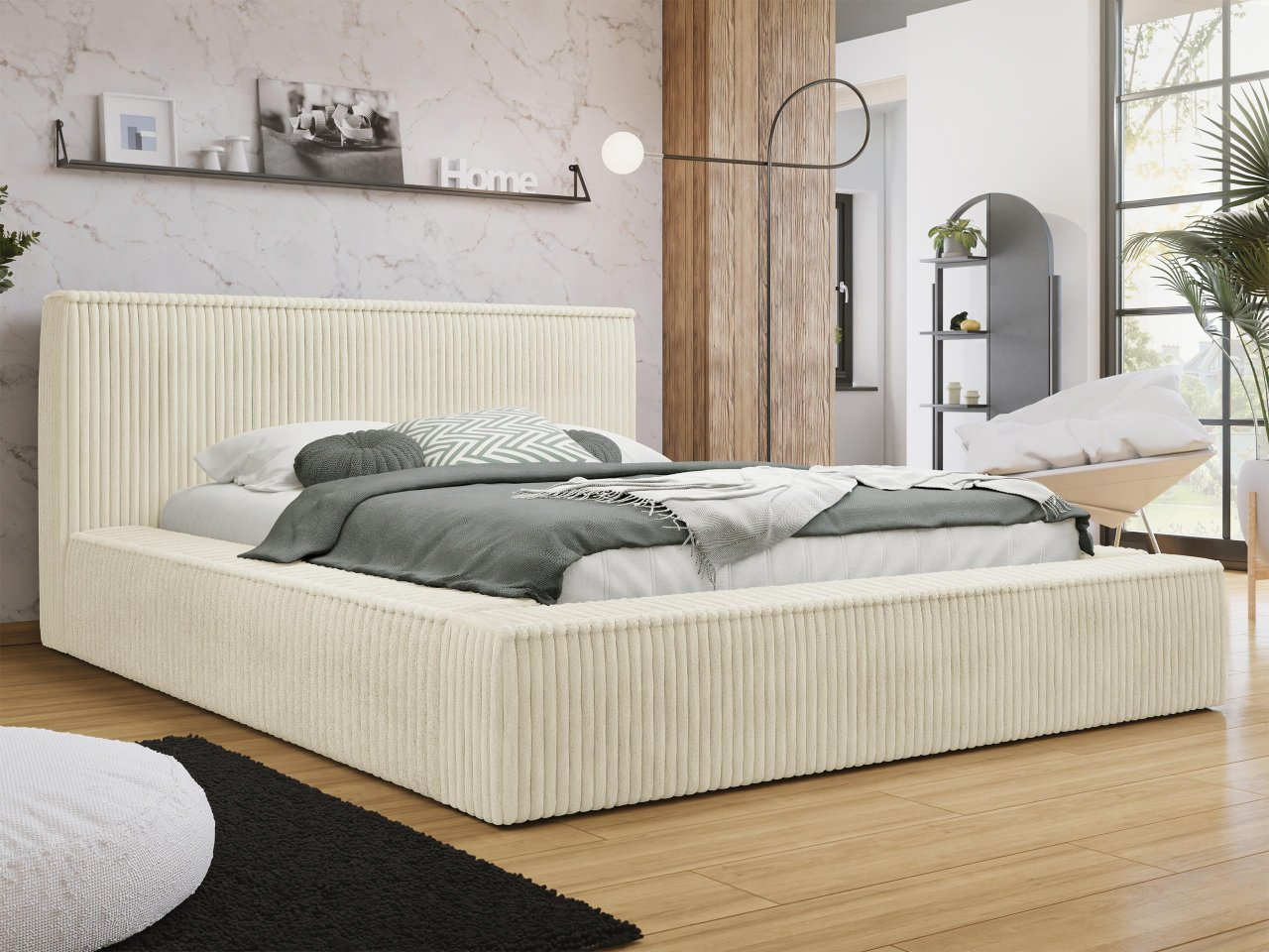 Nagyra értékeli az eredeti formákat a belső terekben? Válasszon kárpitozott ágyat, amely a fejtámla és a test egyedi lekerekített formájával vonzza magára a figyelmet. A fejtámla az egész ágyhoz hasonlóan puha bársony szövettel van kárpitozva, így természetes megjelenése mellett tökéletes az esti olvasáshoz vagy a vasárnapi reggelihez az ágyban és kényelmes támasztást nyújt a hátnak. Az ágy korpusza fából, bútorlapból és HDF lapból készült, gázemelőkön fémrácsos kerettel rendelkezik, ami felemelve tágas tárolóhelyet képez az ágyneműk számára, falécekkel és rendkívül strapabíró HDF lappal bélelve: hálórész: 160 /200 cm ágyalap : fa keret + fém keret, előlap: HDF váz + bútorlap + tömör fa + hab kárpitozáshoz. Az elől nyíló tárolóhely gázgépekkel segíti a nyitást, a tároló fehér táblás keresztrúddal van felszerelve, két rekesszel, maximális terhelhetőség: 200 kg, barkács bútor, stílus: modern. Az ágy krém színű Castel 04 szövettel kárpitozott. A Castel szövet puha, sima szövet, amelyet nagy súrlódás-, kopás- és foltosodási ellenállás jellemez, így ideális mindennapi bútorokhoz. További előnye az Easy Clean technológia - az anyag könnyen tisztítható, amely lehetővé teszi a szennyeződések könnyű eltávolítását kevés vízzel és puha ruhával.