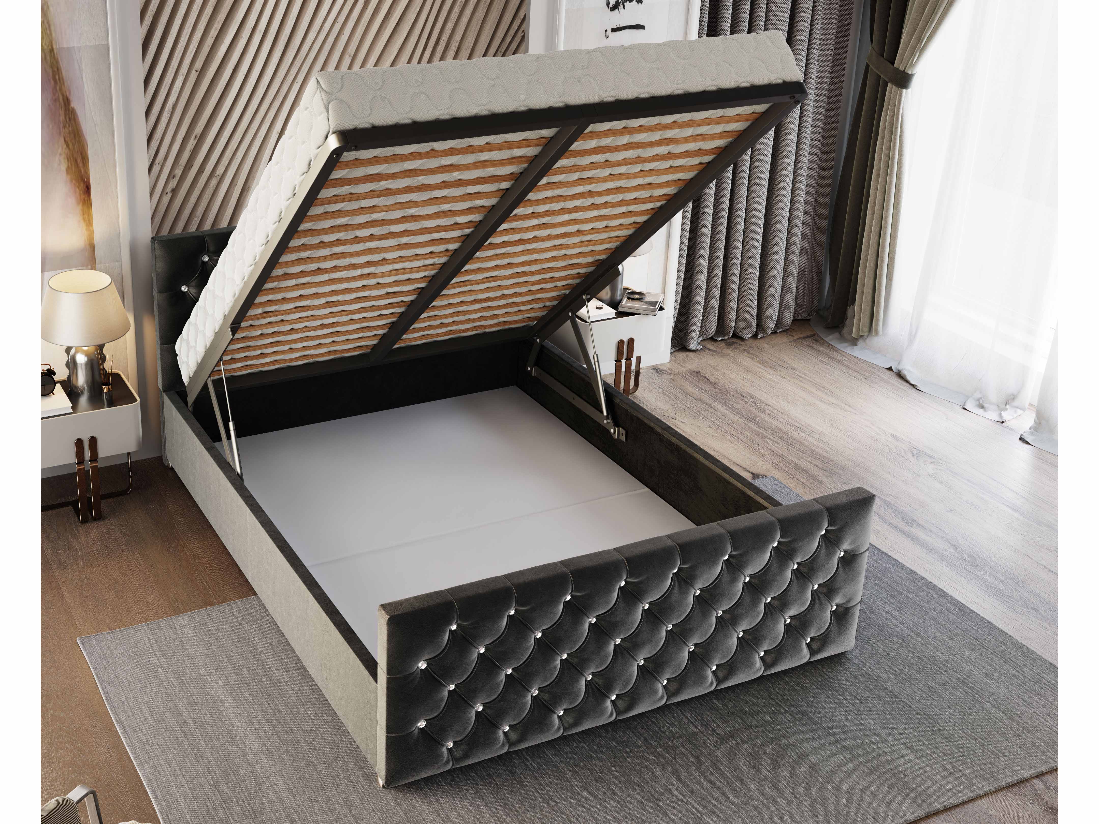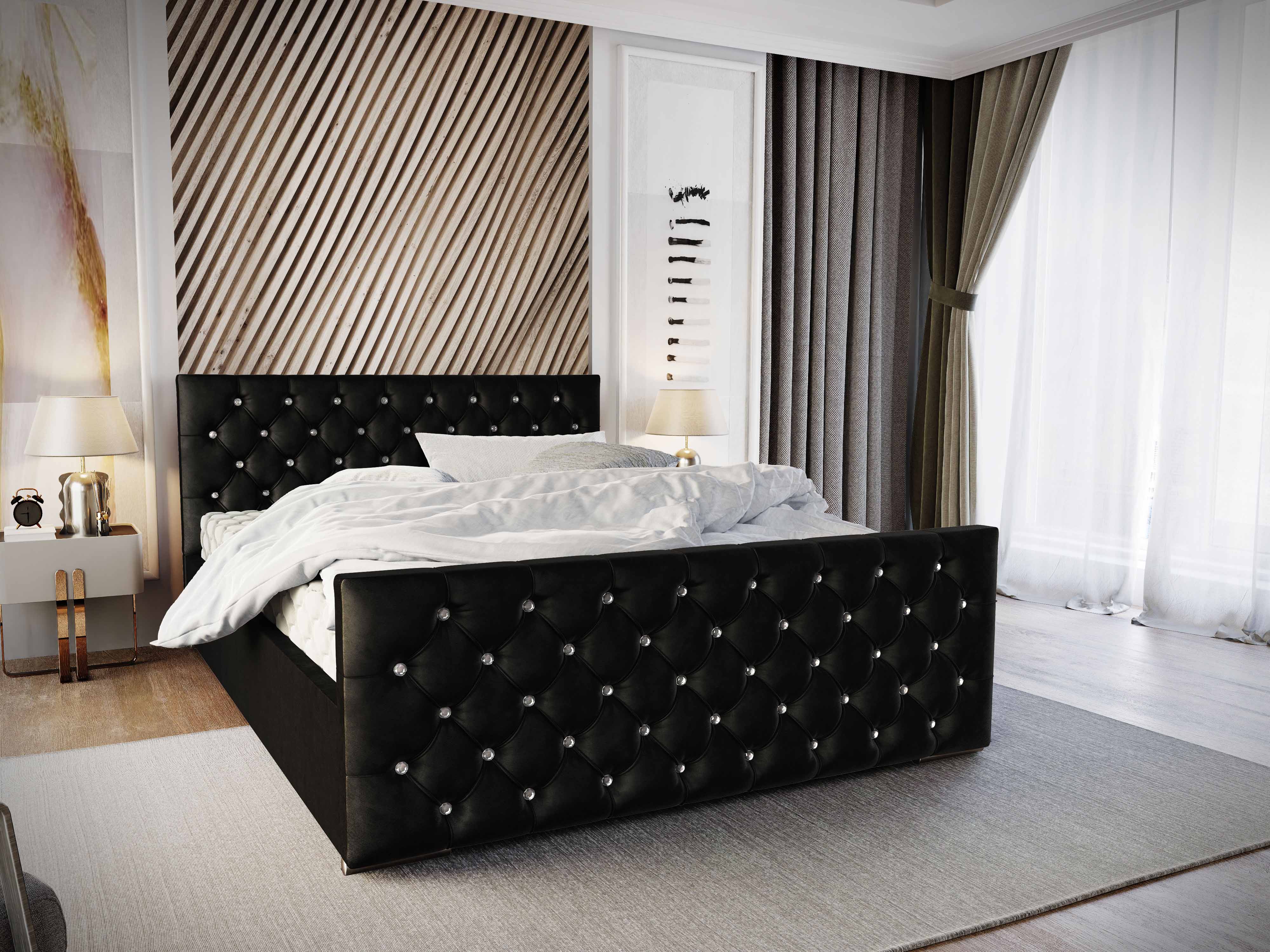 Franciaágy 160 cm Quintin (fekete) (ágyráccsal és tárolóhellyel)